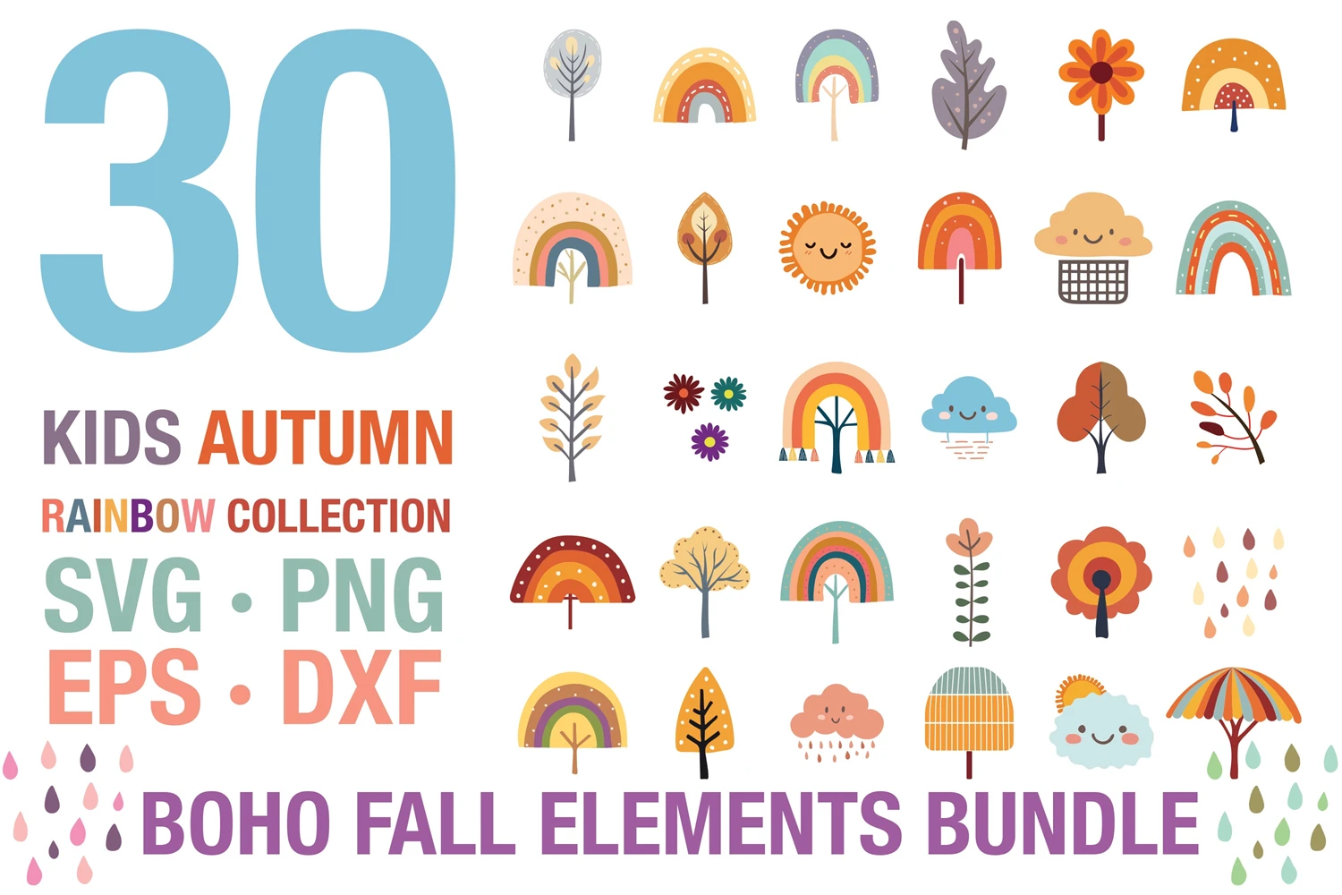 Kids Autumn Rainbow SVG Bundle Collection