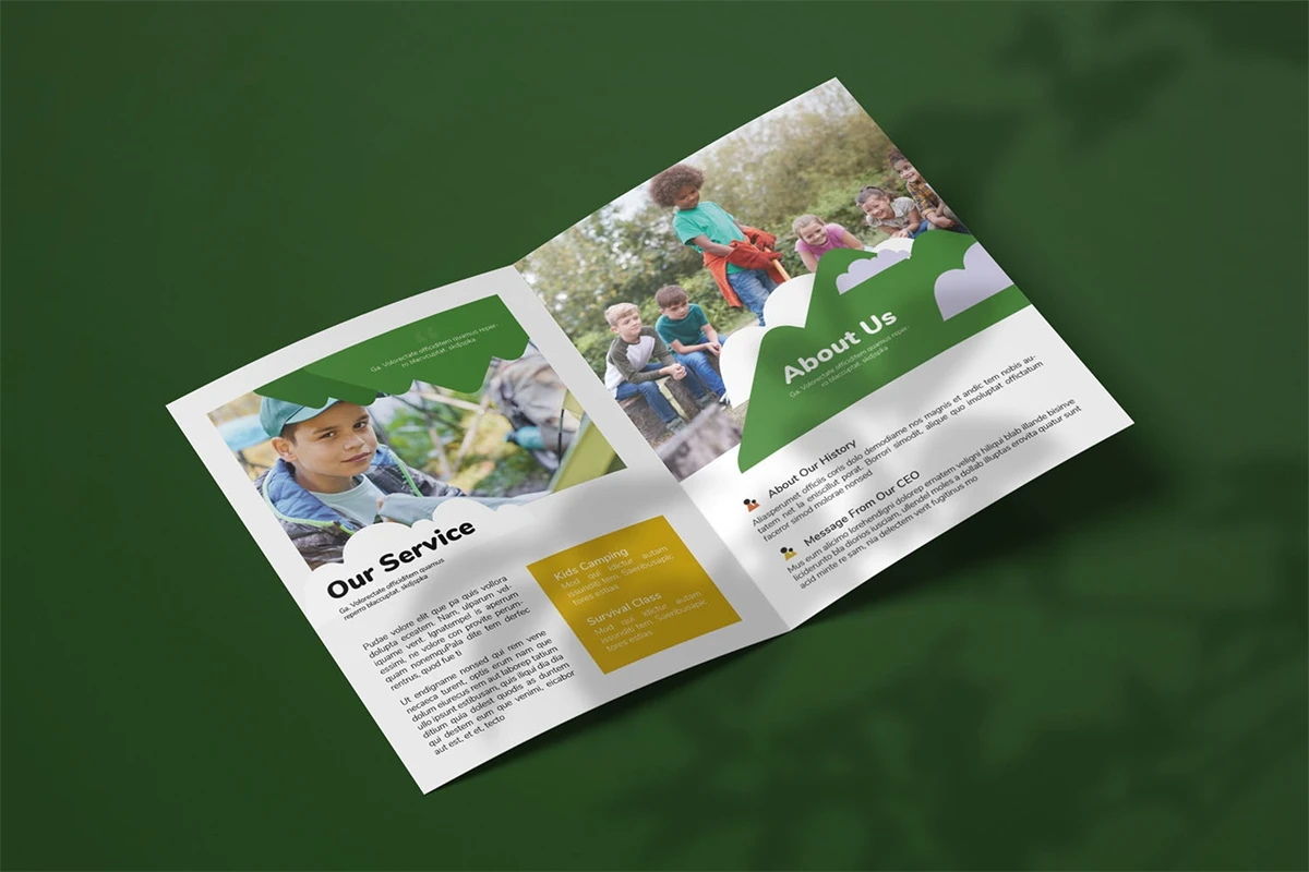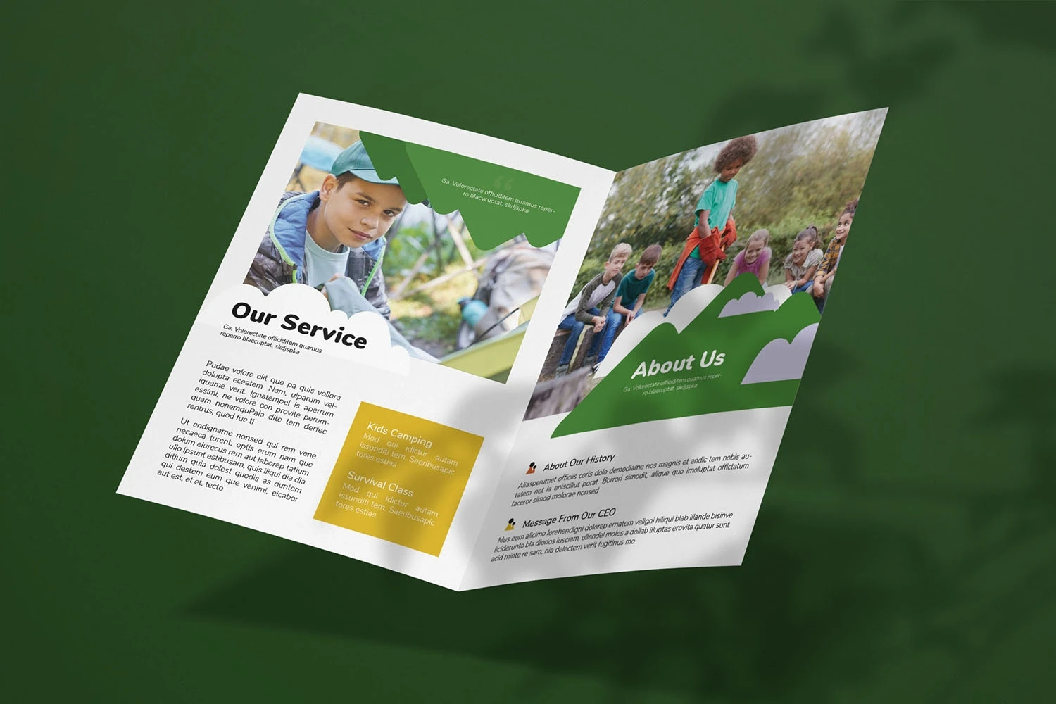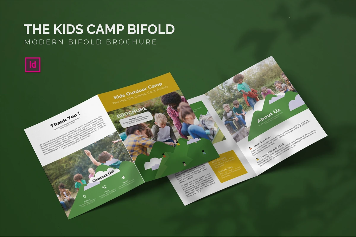 Kids Camp - Bifold Brochure We present this Bifold Brochure for you, simple and very elegant, and this Bifold Brochure is suitable for all types of your business, made with adobe inDesign, very easy to customize, Hope you Like it, dont forget to rate, Thanks.
