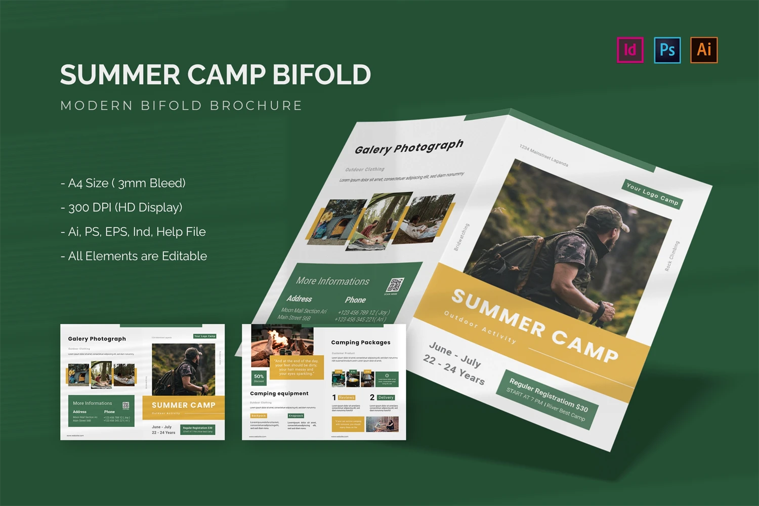Kids Camp - Bifold Brochure We present this Bifold Brochure for you, simple and very elegant, and this Bifold Brochure is suitable for all types of your business, made with adobe inDesign, very easy to customize, Hope you Like it, dont forget to rate, Thanks.