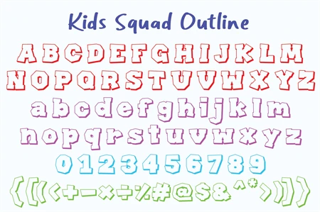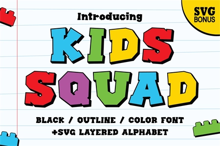 Kids Squad Font is family font included 3 style bold,outline and color font.