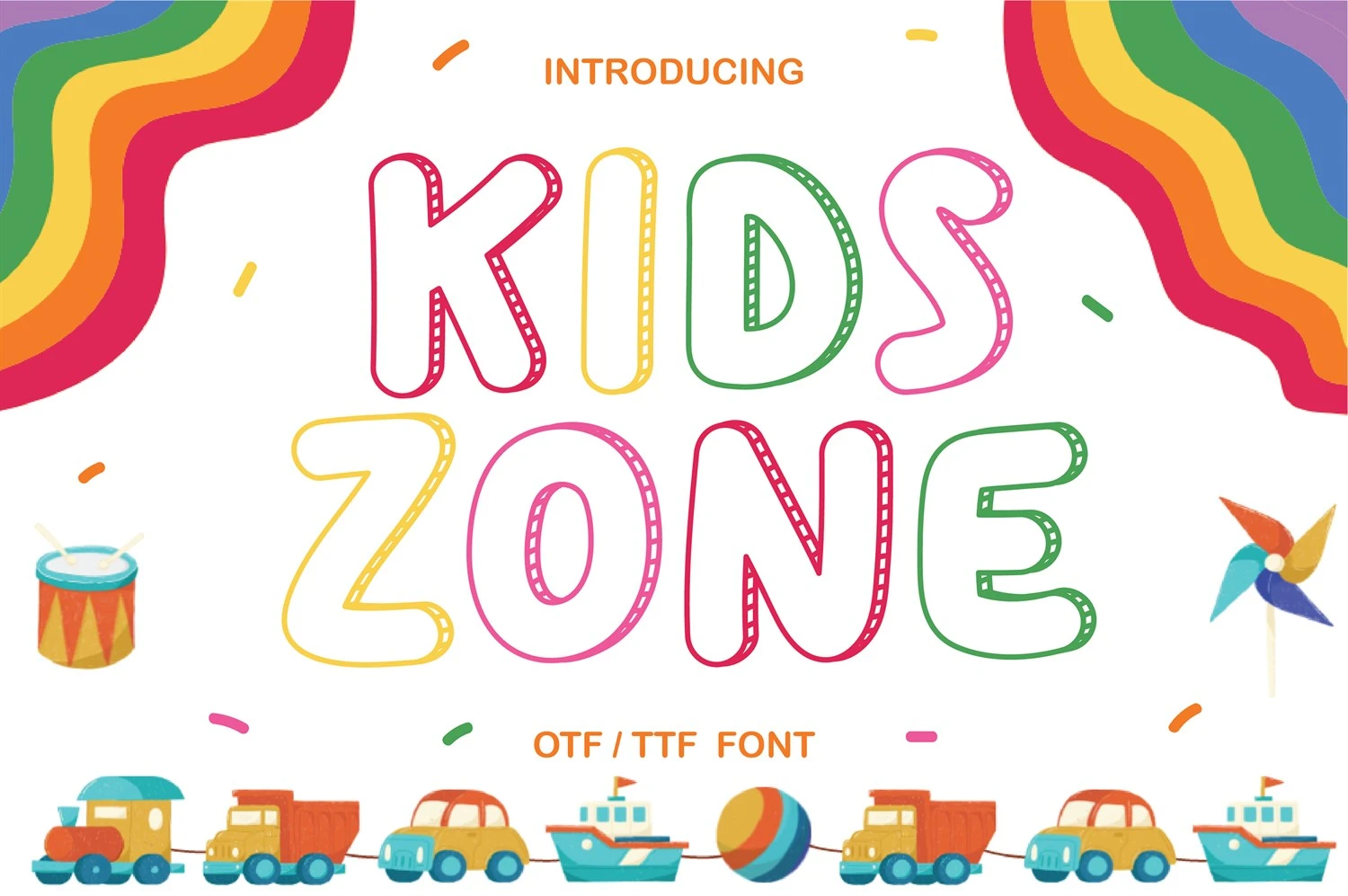 Kids Zone is a fun display font that will turn any creative idea into a true standout! Stay creative with this cute and playful typeface, and use it to brighten any school project!