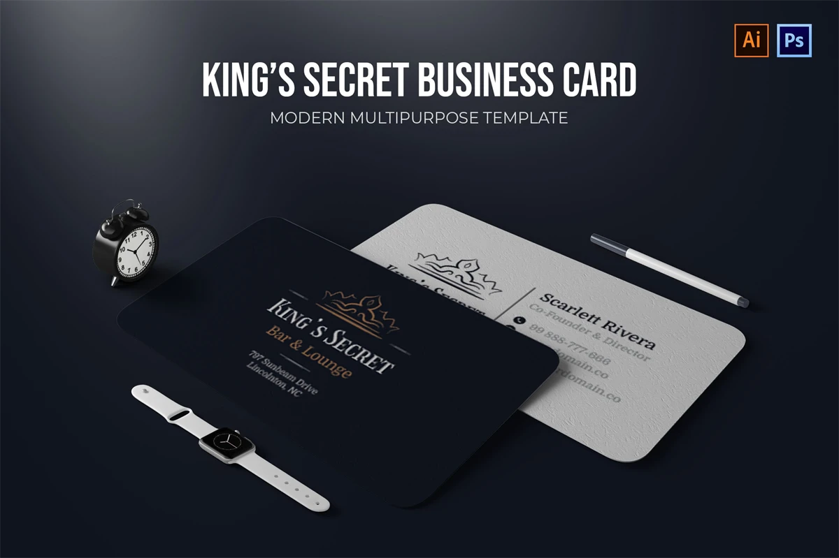 This King's Secret Bar - Business Card make your business cards look professional. You can use this business card for, identity, company business cards, Corporate Business, Creative, Blogs, Photographers, Artists, Designers, etc.
