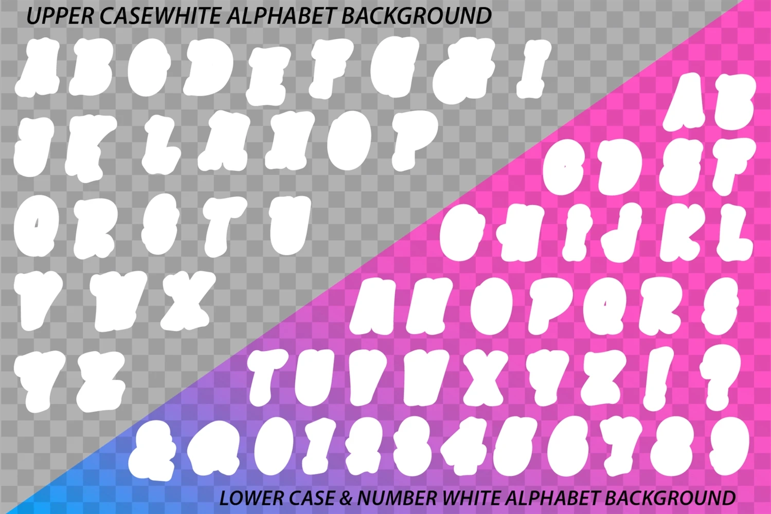 Download including: 3 zip file with 66 individual PNG files A-Z (Upper case & Lower case Letter), A-Z White Color Background and Number 0-9