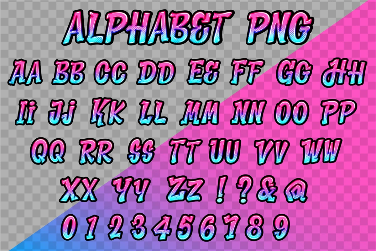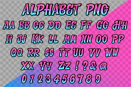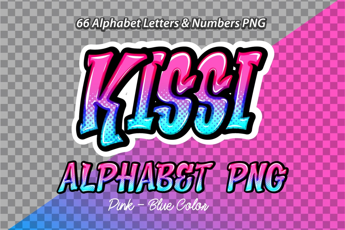 Kissi Pink Blue color Alphabet letters & numbers PNG. file