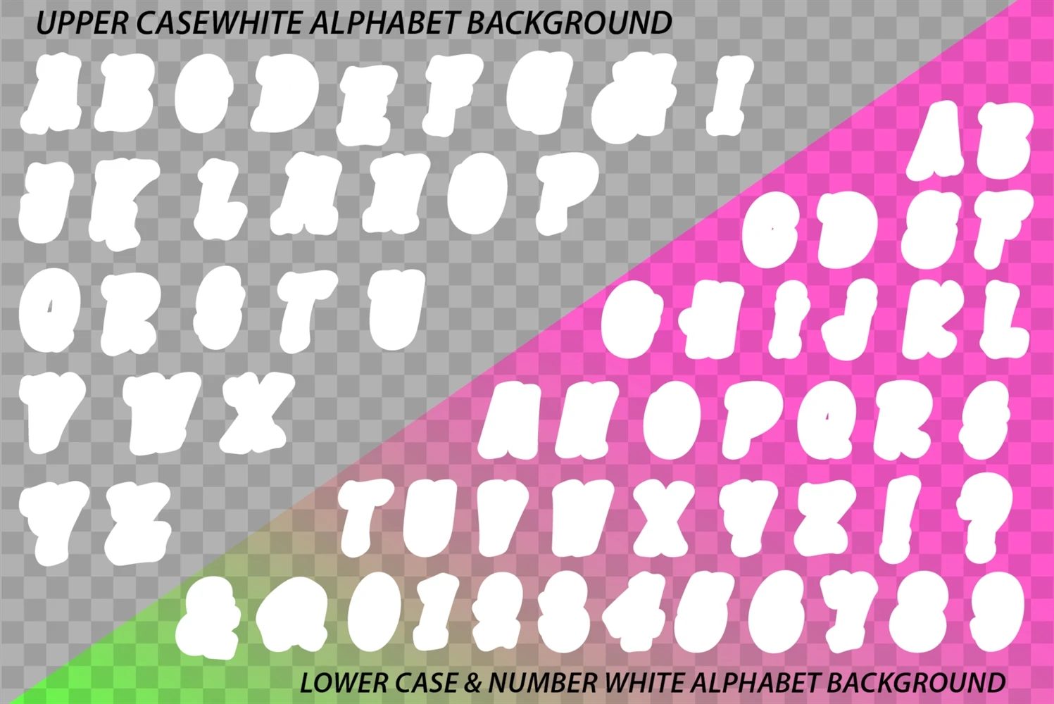 Download including: 3 zip file with 66 individual PNG files A-Z (Upper case & Lower case Letter), A-Z White Color Background and Number 0-9