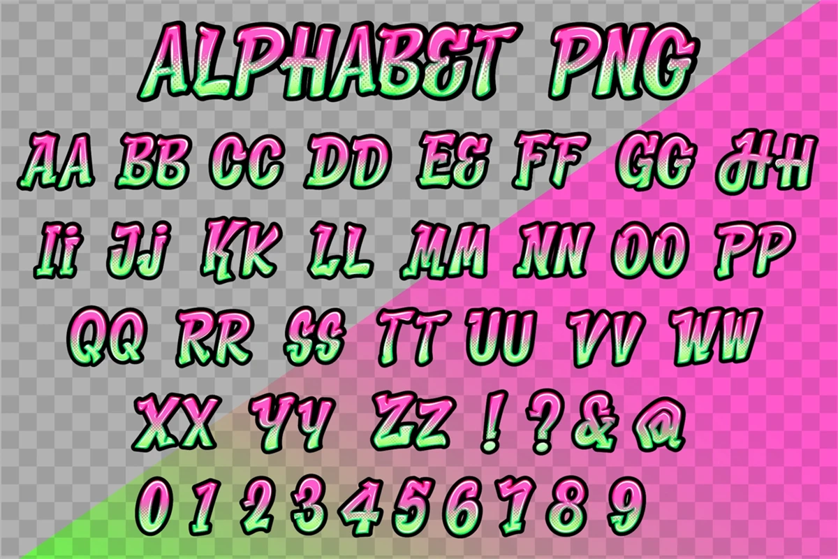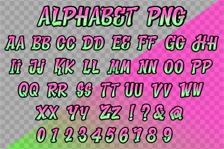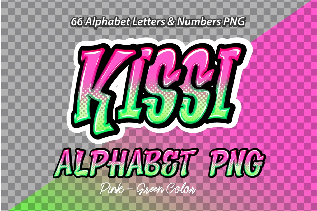 Kissi Pink Green color Alphabet letters & numbers PNG. file