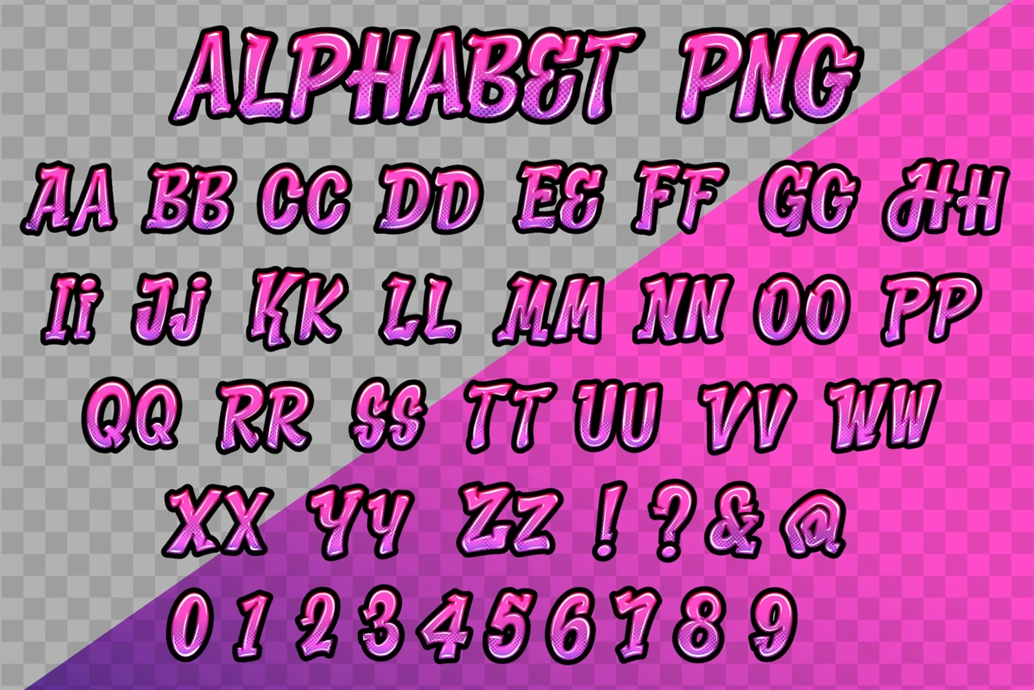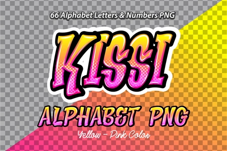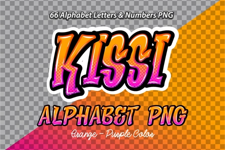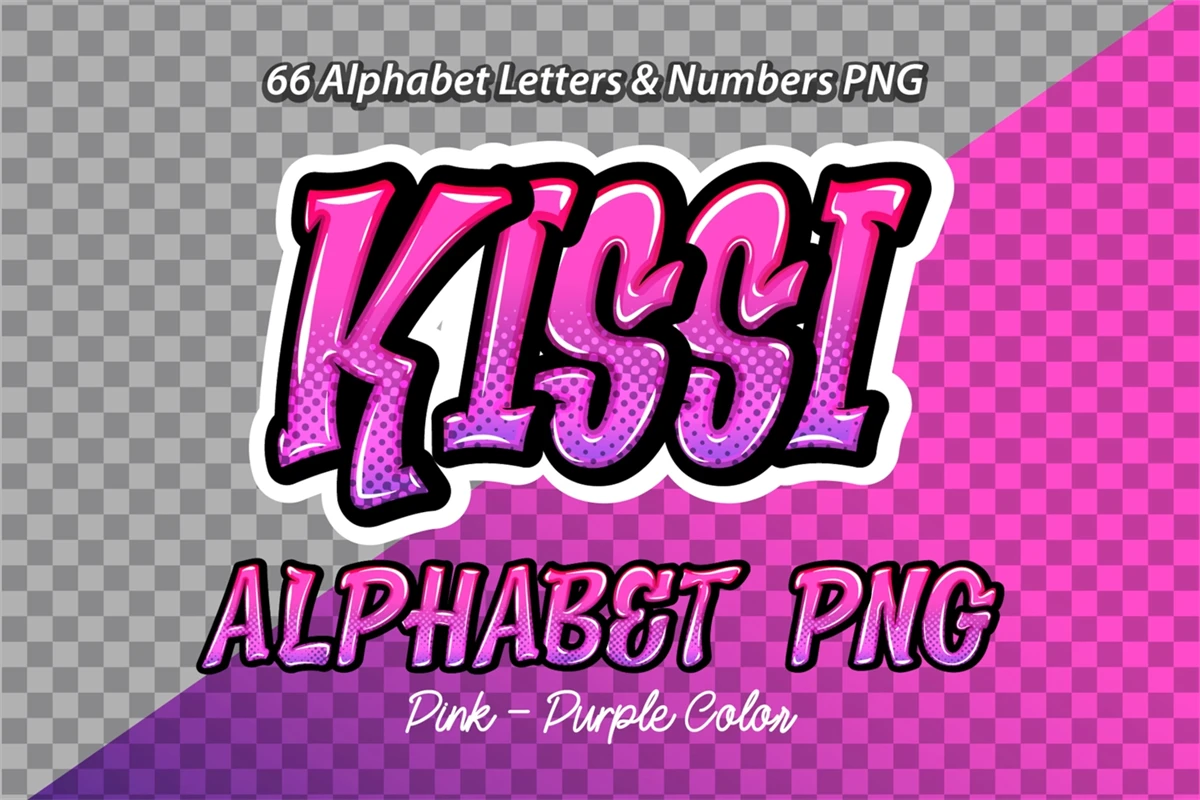Kissi Pink Purple color Alphabet letters & numbers PNG. file