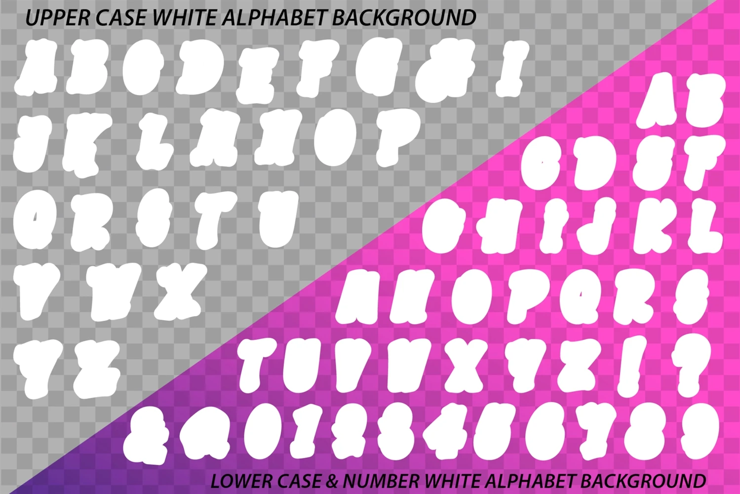 Download including: 3 zip file with 66 individual PNG files A-Z (Upper case & Lower case Letter), A-Z White Color Background and Number 0-9