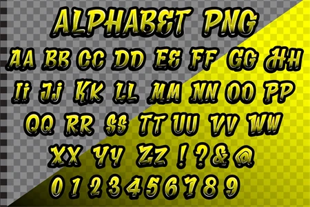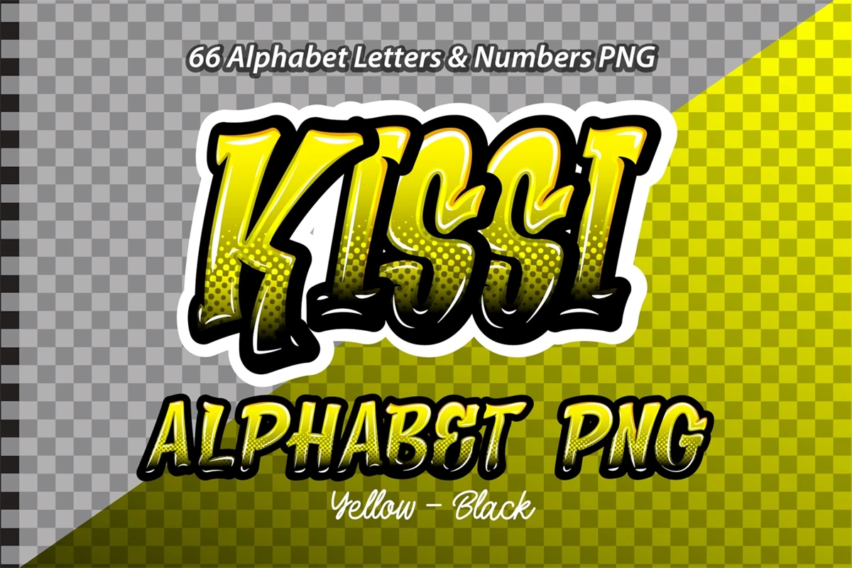 Kissi Yellow Black color Alphabet letters & numbers PNG. file