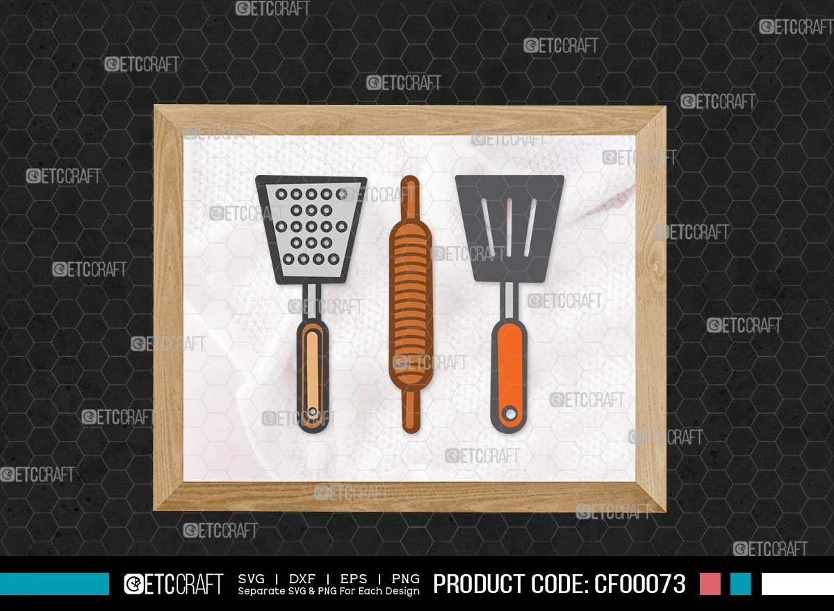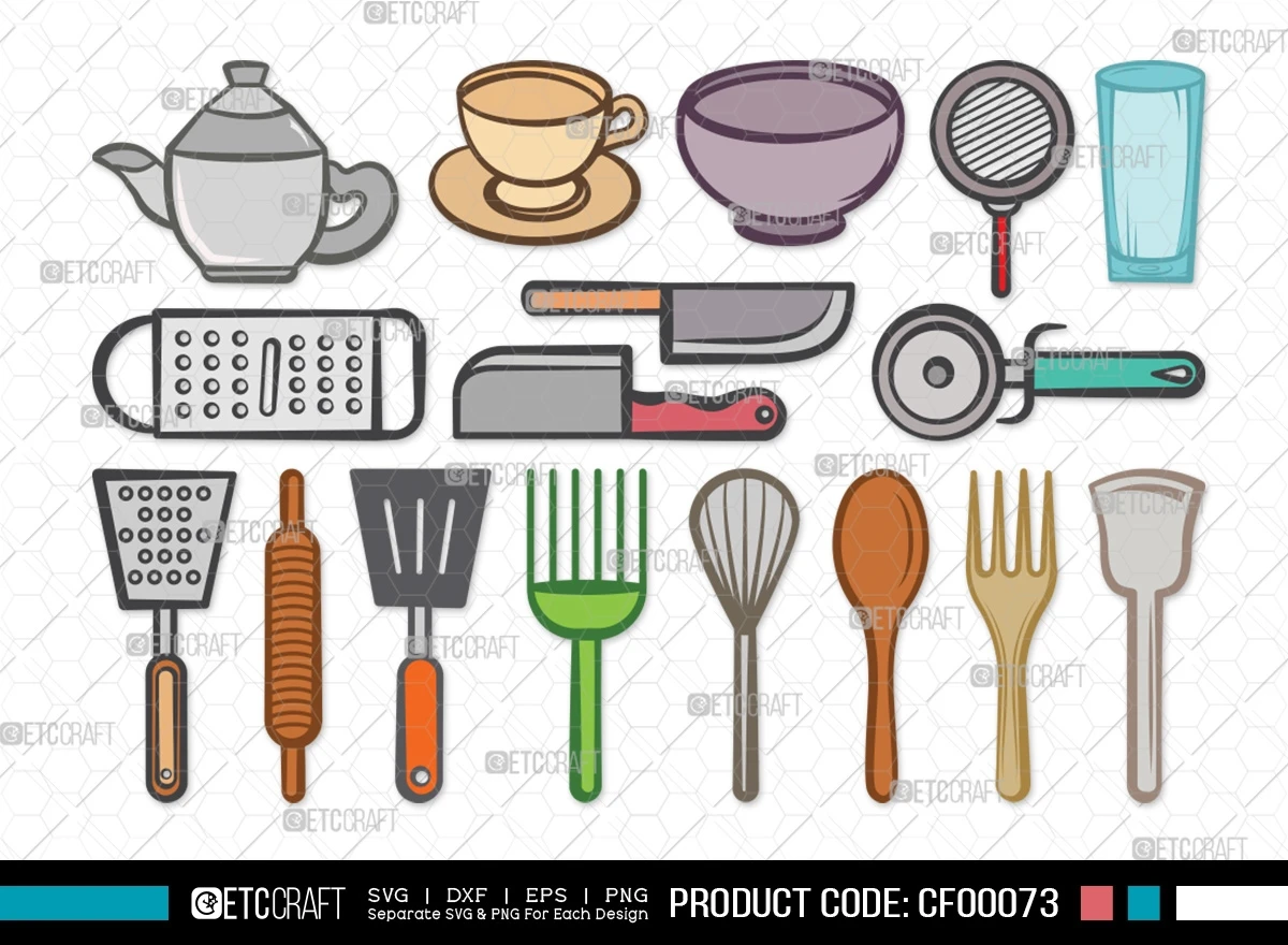 Transform your kitchen-themed projects into a delightful culinary experience with our "Kitchen Clipart Cooking Utensils" SVG Cut File Bundle. Enhance your creativity in the kitchen and beyond!