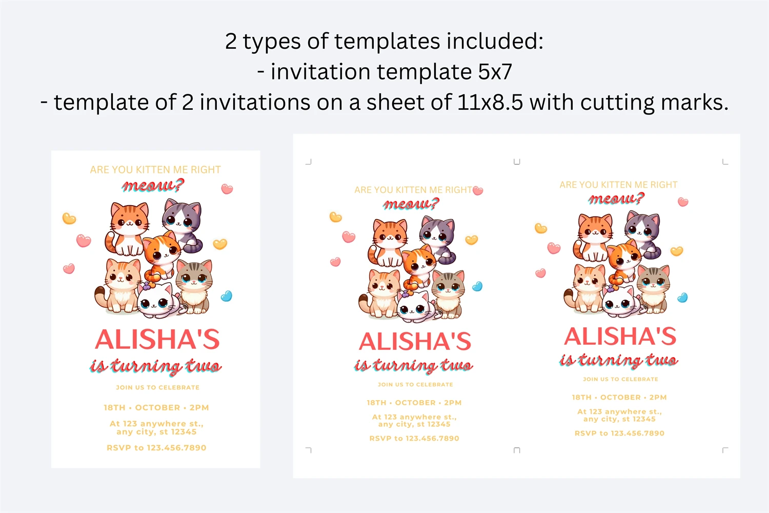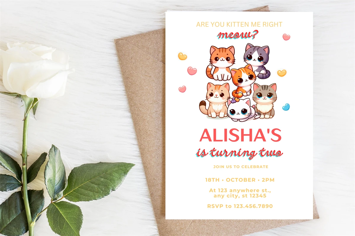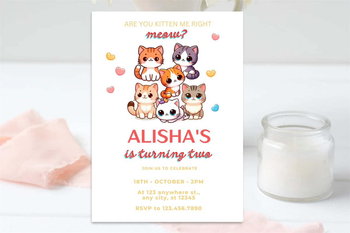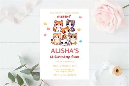 and treats. Let's celebrate your little one's special day with a meow-tastic invitation!