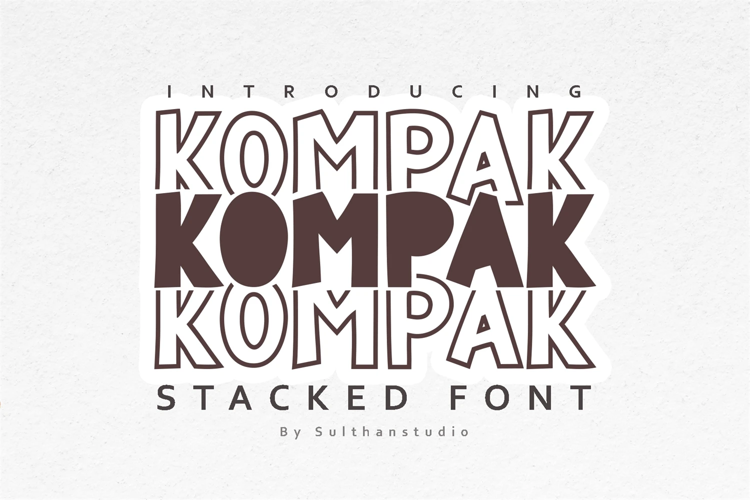 Kompak font display with a super cool and modern stacked style including only uppercase and lowercase letters.