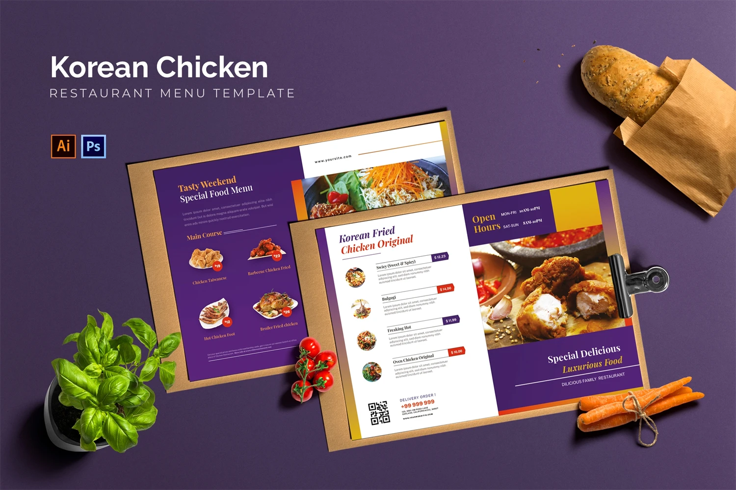 Korean Chicken - Restaurant Menu. This template is great for your business and will make your customers interested, elegant, and easily editable according to your needs, this restaurant menu is perfect for, promos, cafes, hotels, resort shops online. etc. I hope you enjoy this restaurant menu