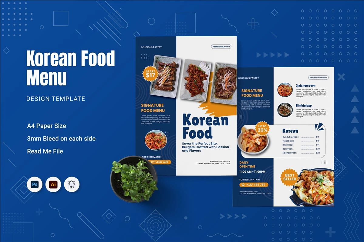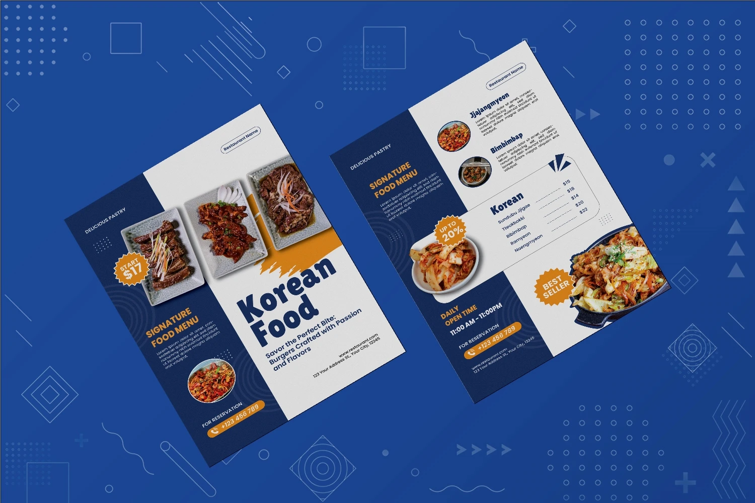 Promote your restaurant, cafe, or anything else with this **"Korean Food Restaurant Menu."**