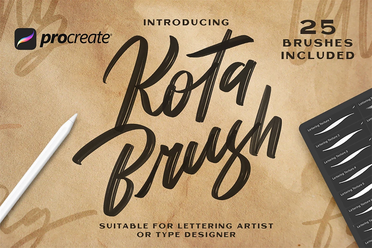 Kota Brush Lettering - Procreate Brush In this package you will find everything you need - for example, making logos, illustrations, or special backgrounds!. Using a brush is very simple - just place the brush strokes and select the appropriate brush from the brush panel.