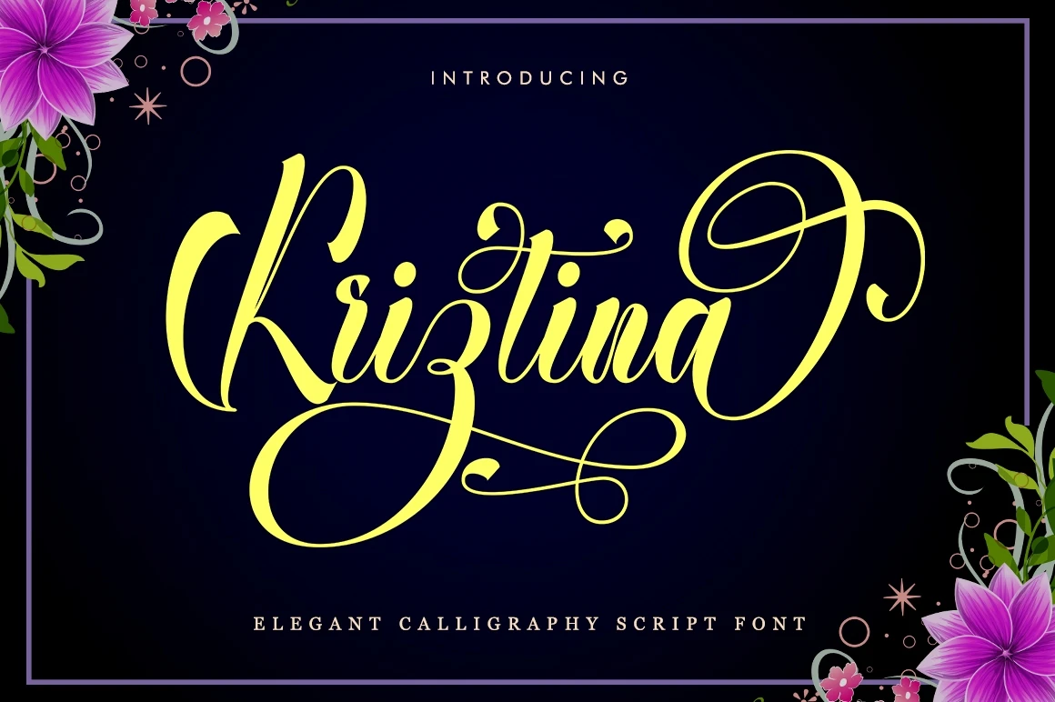 Kriztina is a modern calligraphy font with a gorgeous style. This font is perfect for branding, wedding invites, magazines, mugs, business cards, quotes, posters, and more creative ideas.