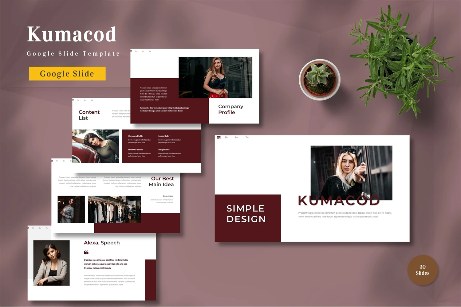 Get it now! **Kumacod - Google Slide Template** for All Business and Personal Needs All elements on this template are editable; input your content, replace your image with a placeholder, change the color, and all presentations include an animated slide to present your slides.