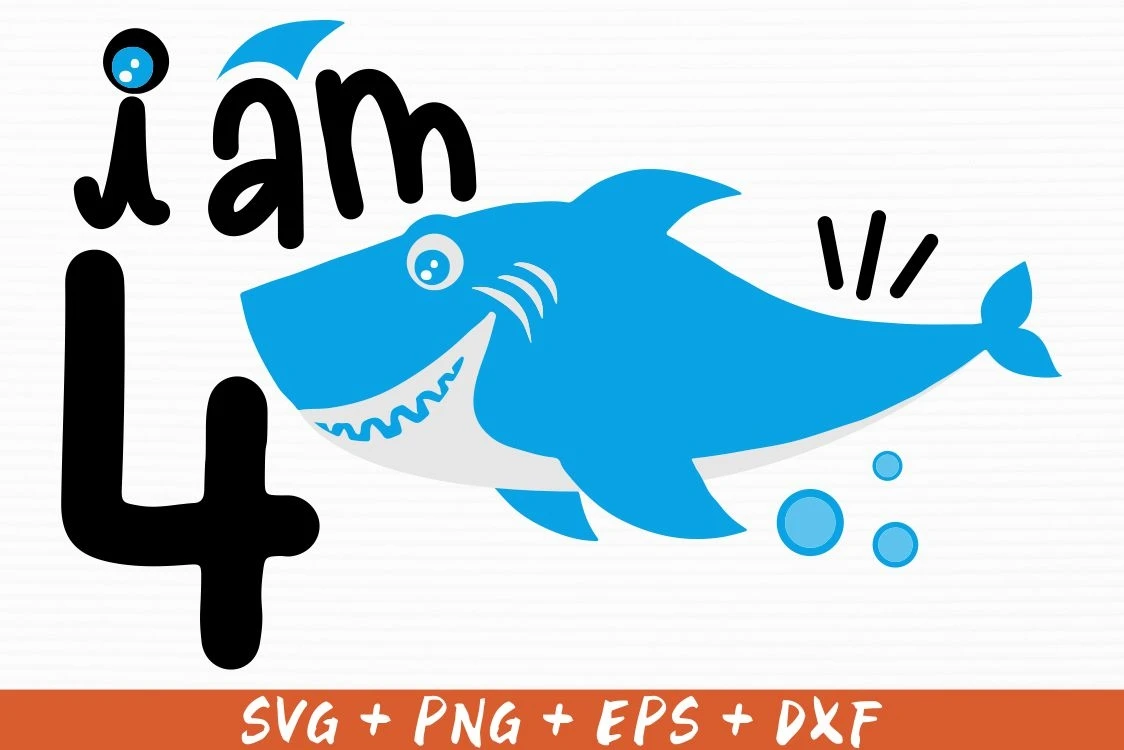 l am Four Shark Birthday Svg Boy Birthday Shark Svg, Dxf Eps
