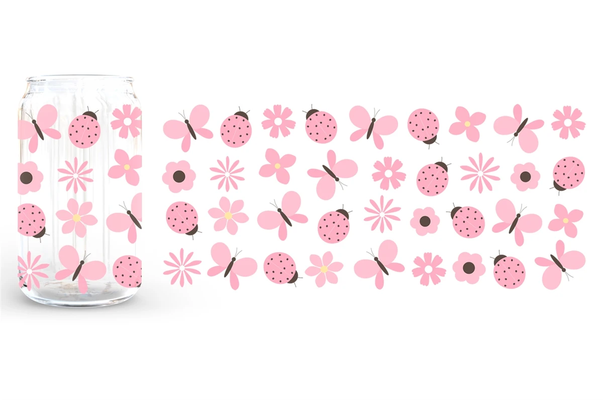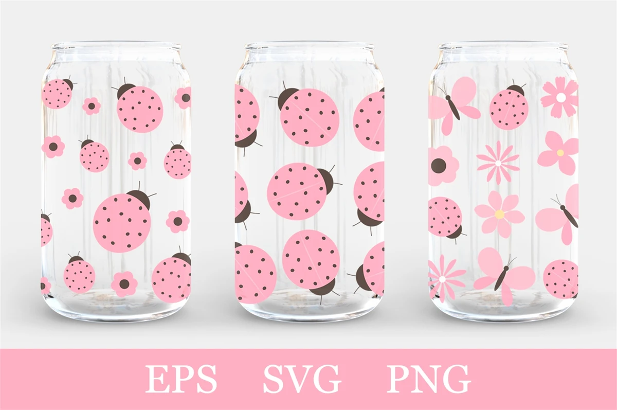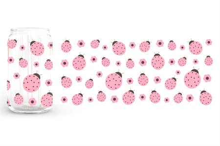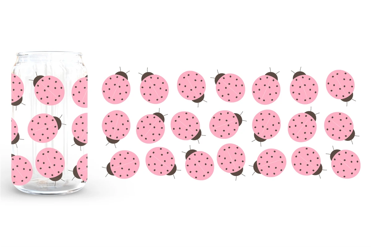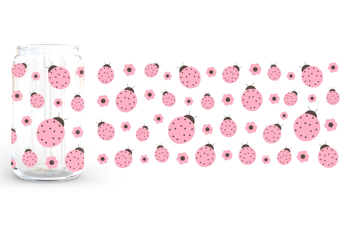 Ladybug Can Glass Wrap sublimation. Ladybug Can Glass 16 oz