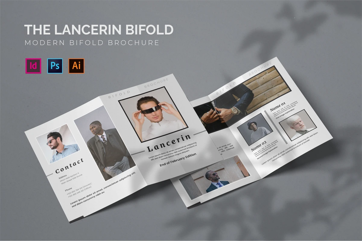 Lancerin - Bifold Brochure We present this Bifold Brochure for you, simple and very elegant, and this Bifold Brochure is suitable for all types of your business, made with Adobe InDesign (INDD), Adobe Photoshop (PSD) and Adobe Illustrator (AI), very easy to customize, Hope you Like it, dont forget to rate, Thanks.