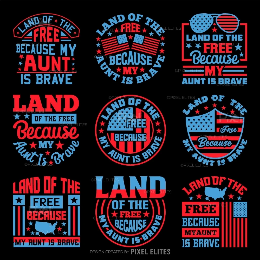 Land Of The Free Because My Aunt Is Brave SVG Independence Day T-shirt Design Bundle Memorable Day with American Quotes