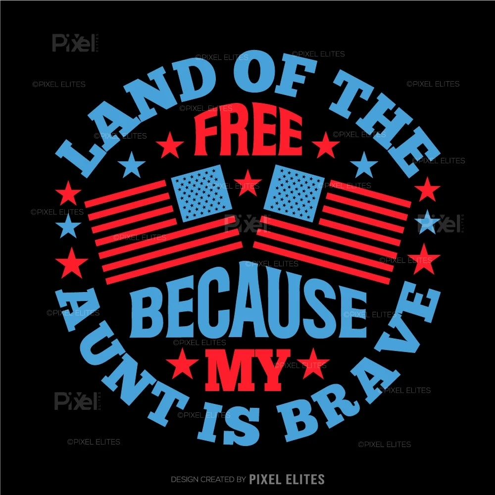 Honor the bravery of your aunt and celebrate freedom with the Land Of The Free Because My Aunt Is Brave SVG Independence Day T-shirt Design Bundle. This heartfelt and patriotic design bundle is perfect for showing pride in family and country during Independence Day celebrations.
