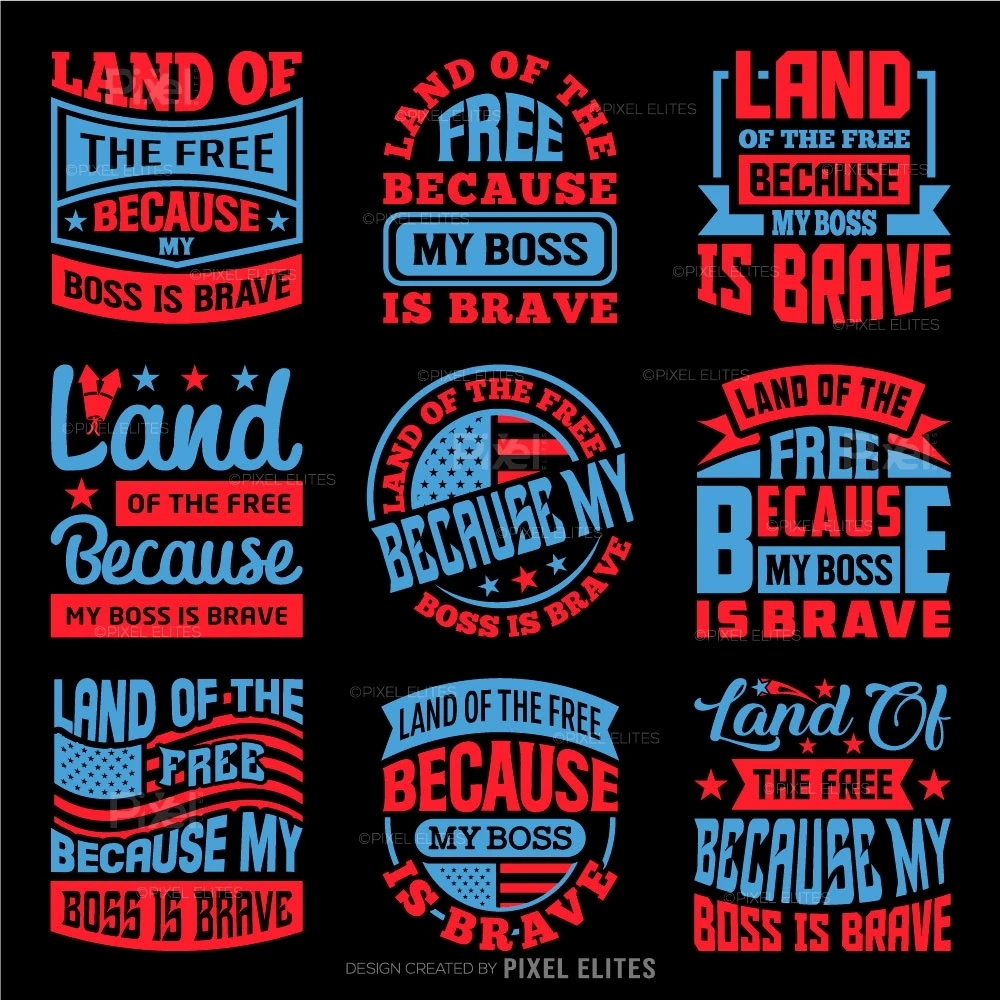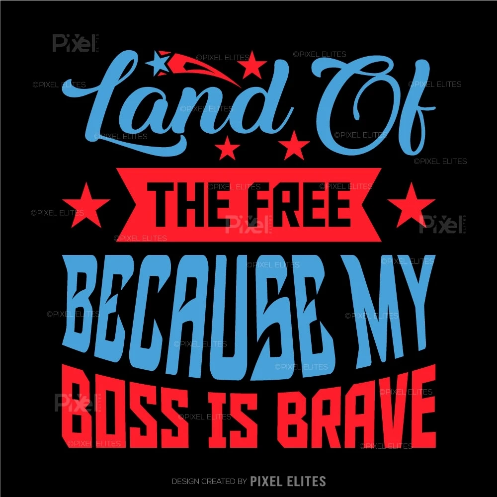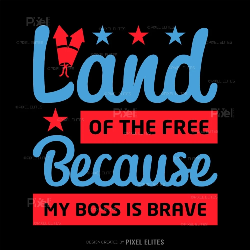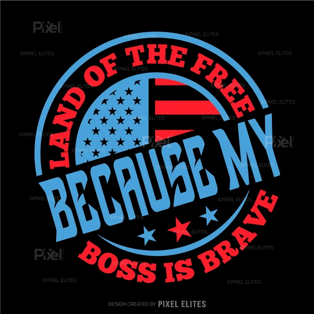 Celebrate Independence Day with pride using our Land Of The Free Because My Boss Is Brave SVG design! Perfect for creating custom t-shirts, mugs, decals, and more, this patriotic SVG file is ideal for anyone wanting to honor the courage of their boss while showing love for the USA.