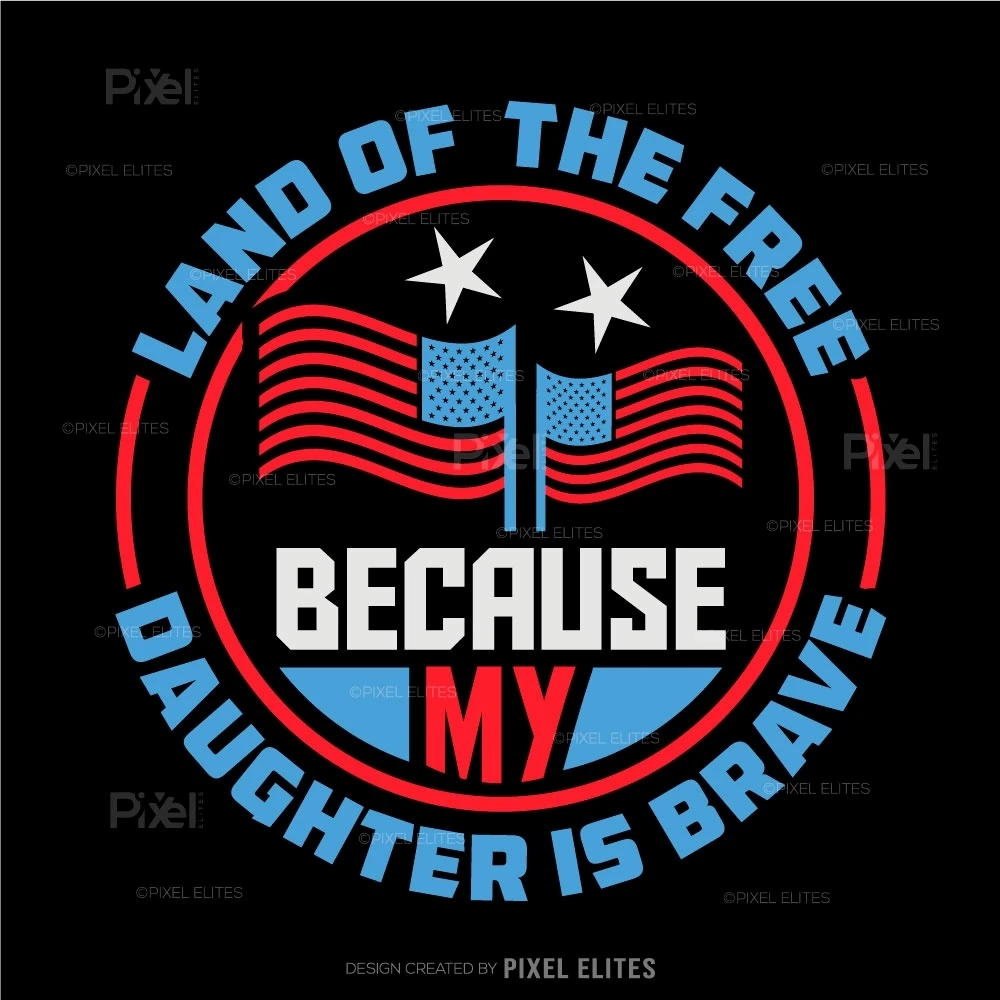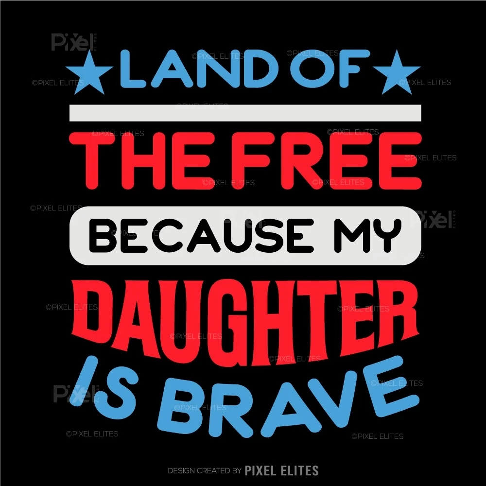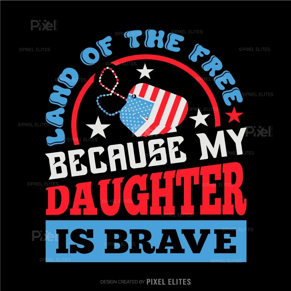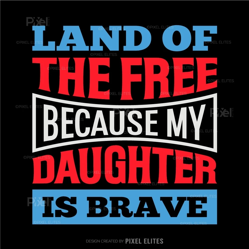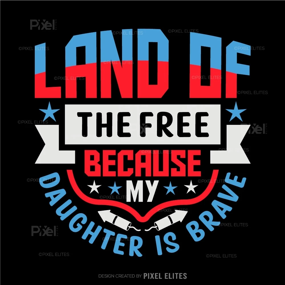 Celebrate your daughters bravery and American pride with the Land Of The Free Because My Daughter Is Brave SVG Independence Day T-shirt Design. This design is part of a special Memorable Day Bundle, featuring an inspiring American quote perfect for creating custom Independence Day apparel and gifts.