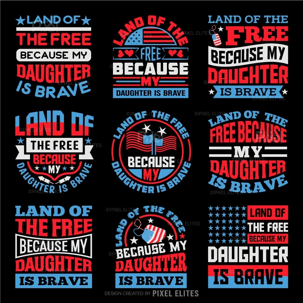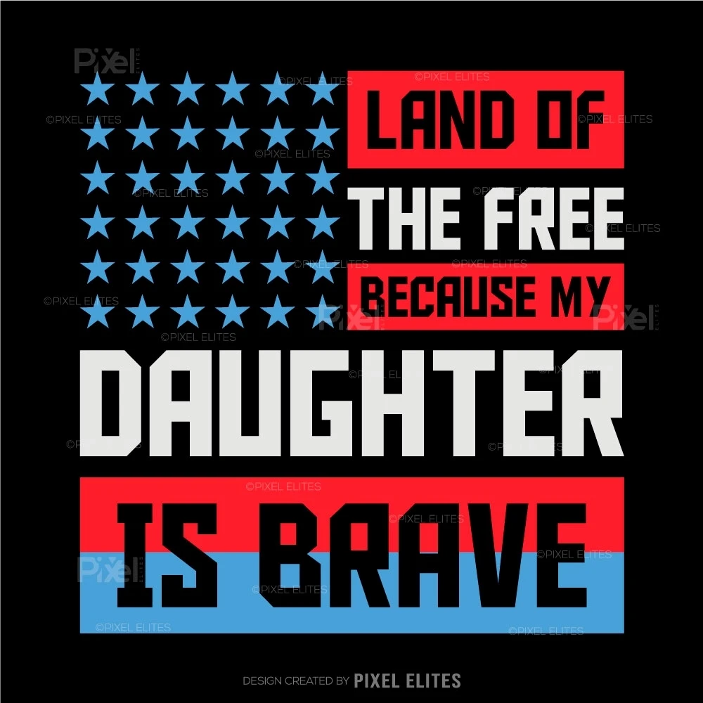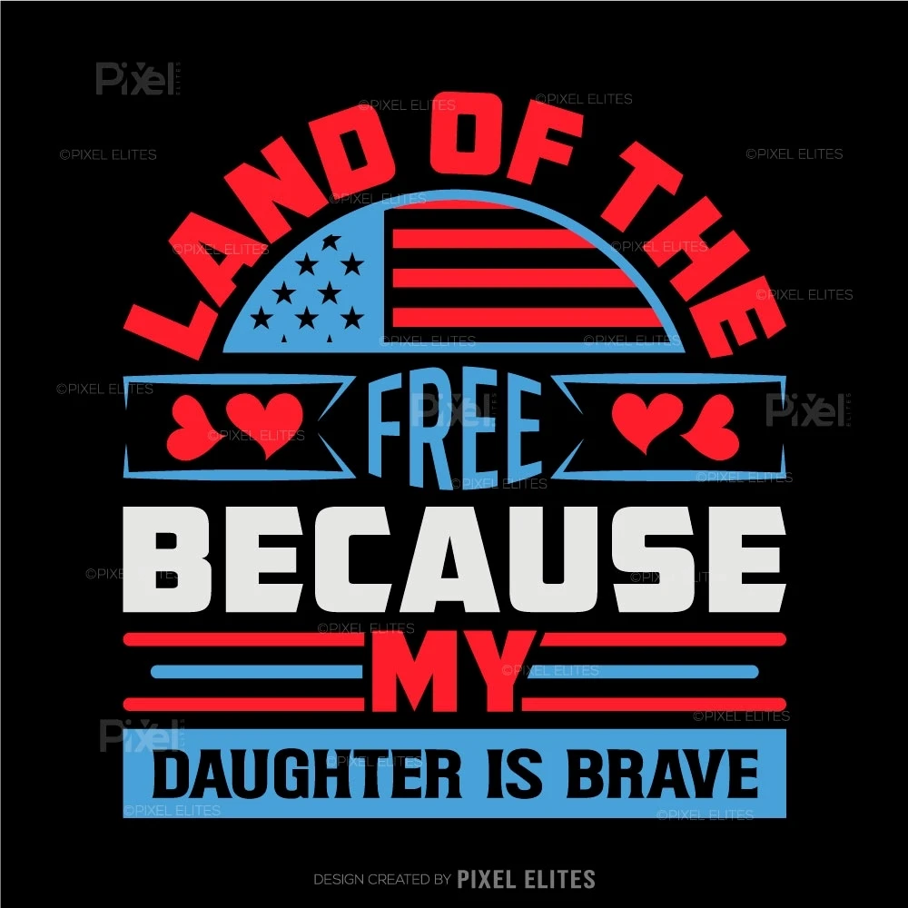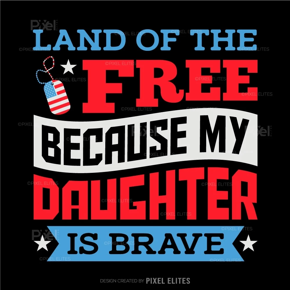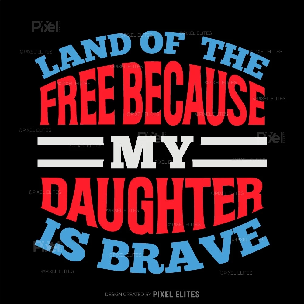 Celebrate your daughters bravery and American pride with the Land Of The Free Because My Daughter Is Brave SVG Independence Day T-shirt Design. This design is part of a special Memorable Day Bundle, featuring an inspiring American quote perfect for creating custom Independence Day apparel and gifts.