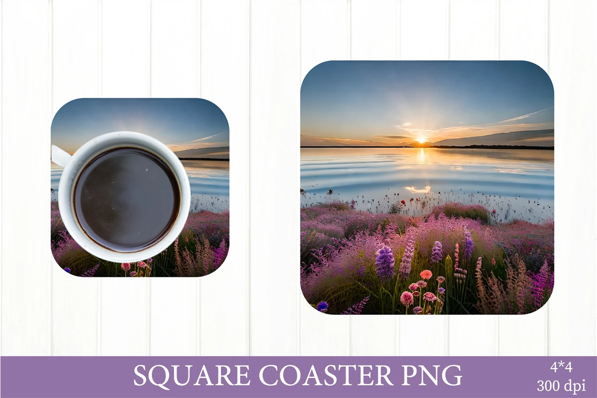 Landscape Sublimation. Square Coaster Sublimation PNG