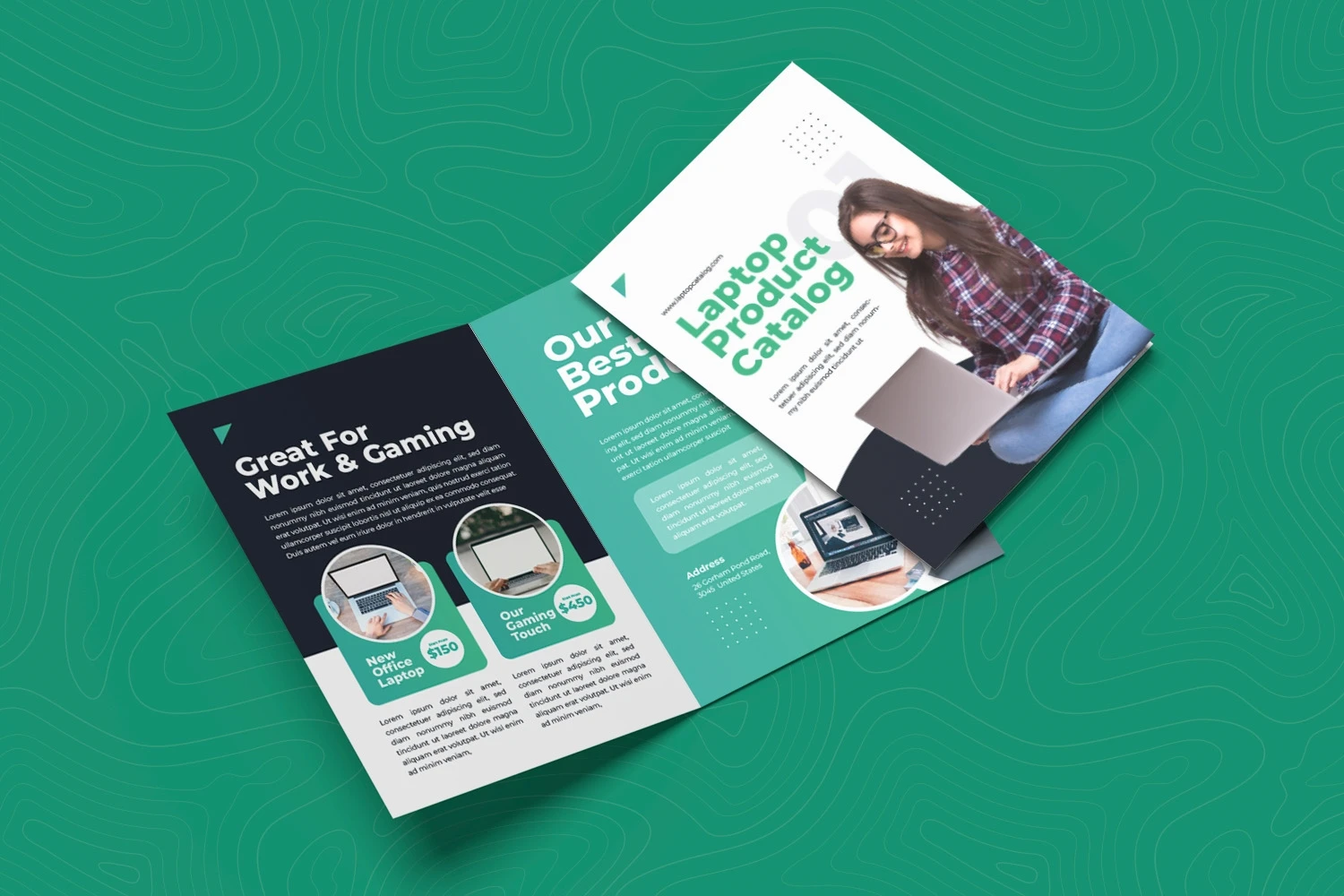 This bifold brochure design template offers a canvas to elegantly present your content, making it perfect for introducing products, showcasing services, or sharing valuable insights.