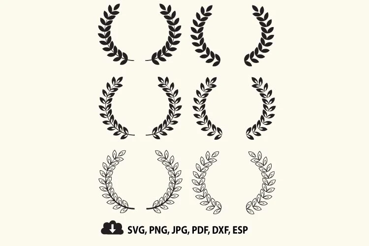 Laurel Svg, Leaf Wreath, Cutting File, Laurel wreath Silhouette, Leaf monogram