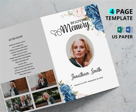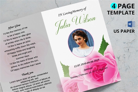 8.5x11 Inches Microsoft Word, Publisher and CANVA Funeral Program Template.
