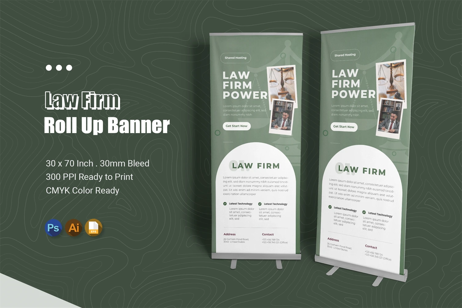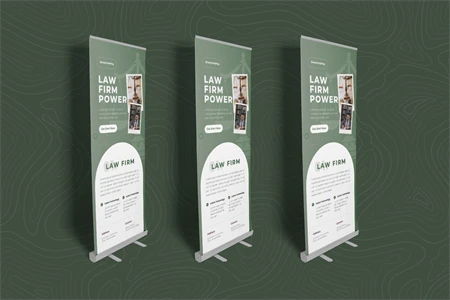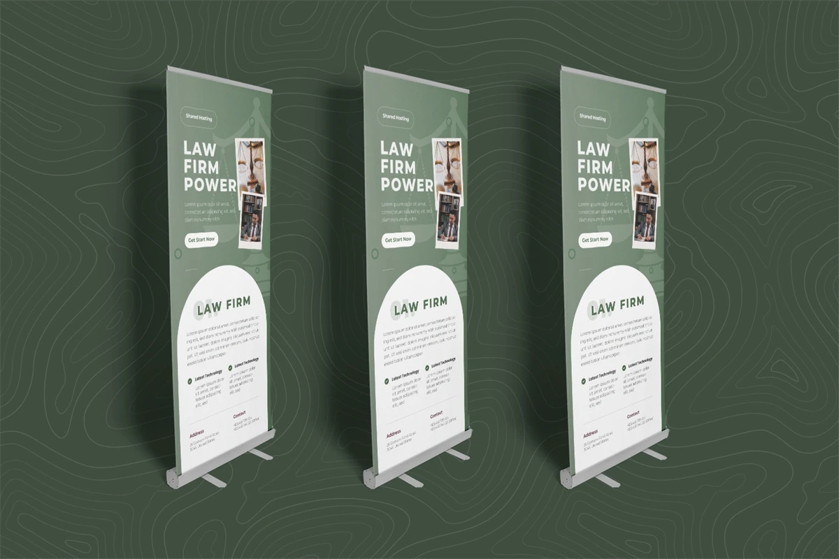 Our roll-up banner template tells your brand's story at a glance. This design stands out and can be used to showcase pictures and content effectively.
