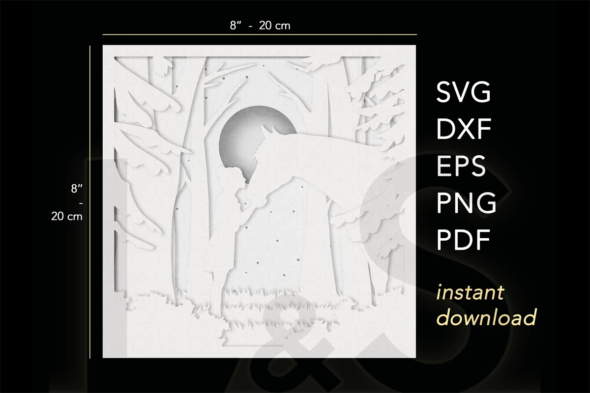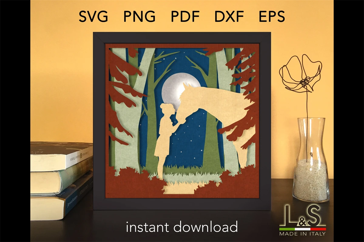 Download this Girl with Horse Shadow Box SVG File and create a unique paper cut Light Box in just a few minutes!