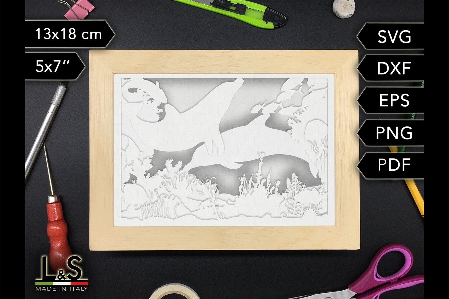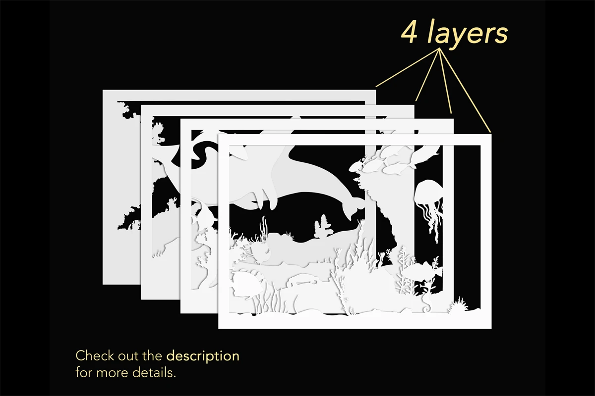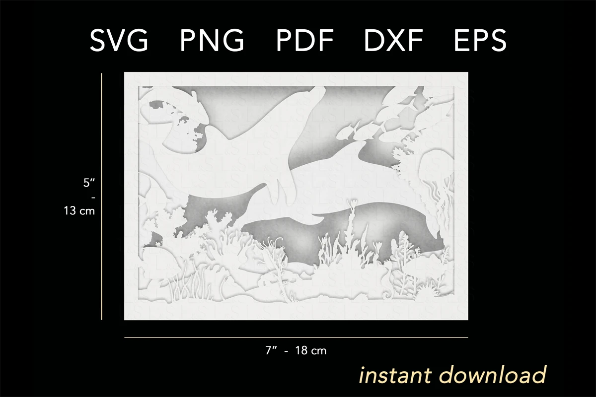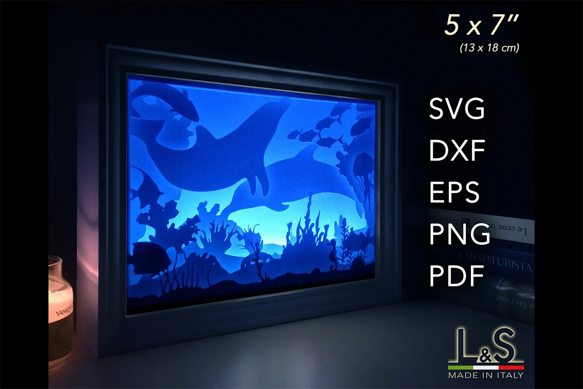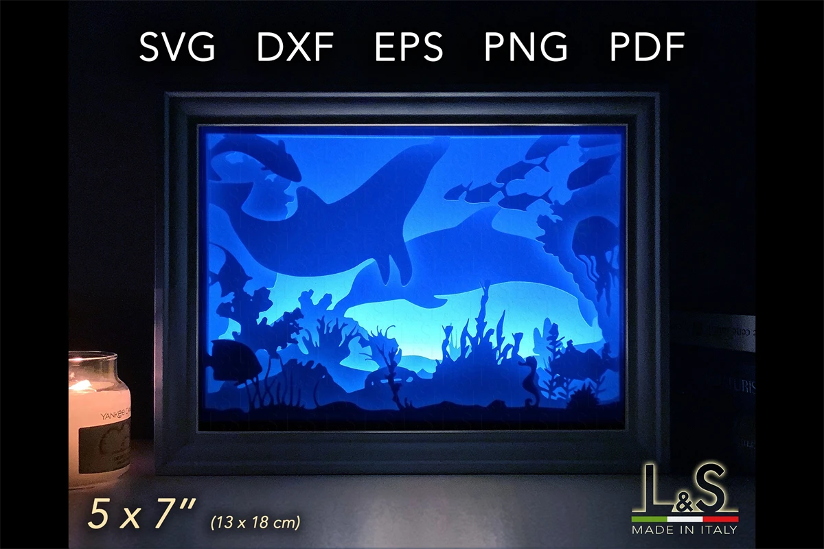 Download this 5x7'' Ocean Shadow Box SVG File and create a unique paper cut Light Box in just a few minutes!
