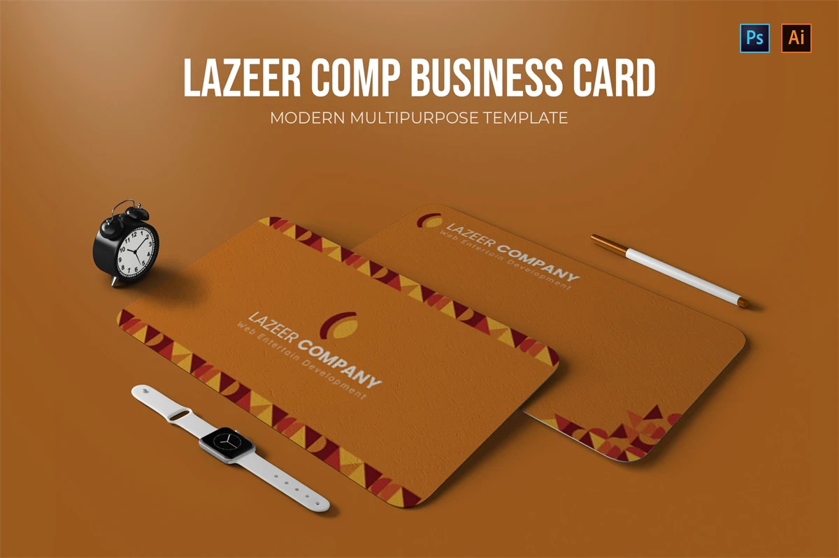 This Lazeer Comp - Business Card make your business cards look professional. You can use this business card for, identity, company business cards, Corporate Business, Creative, Blogs, Photographers, Artists, Designers, etc.