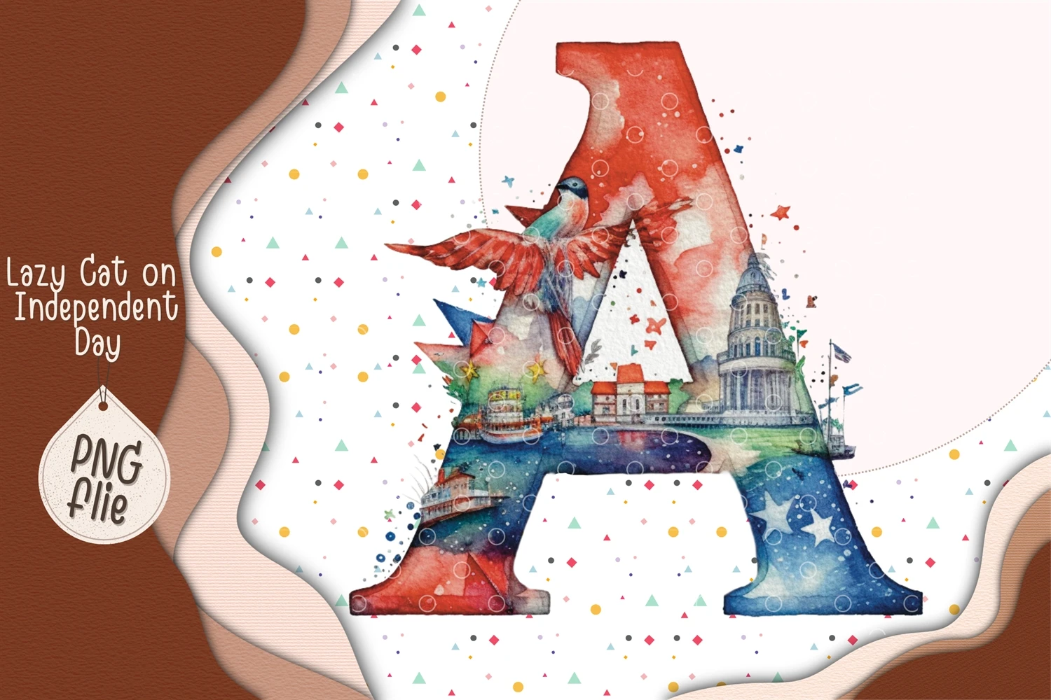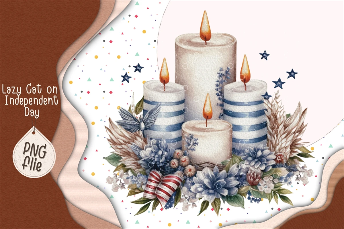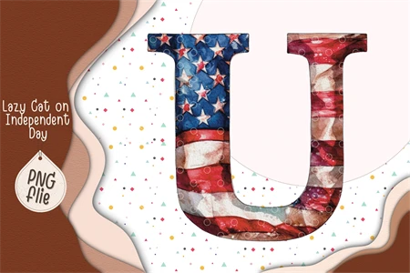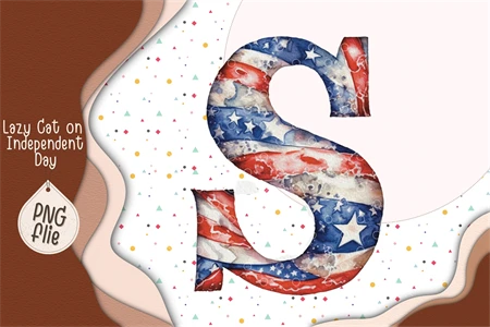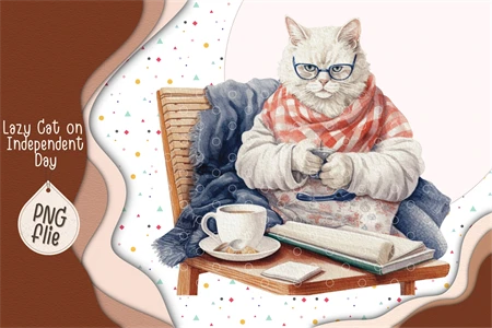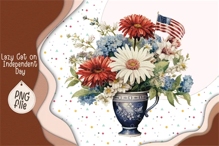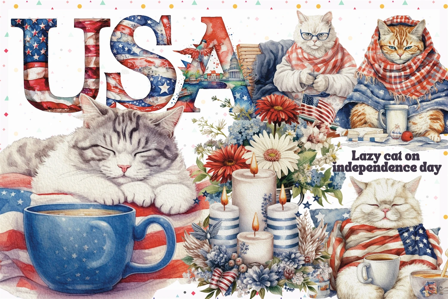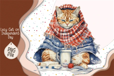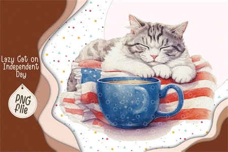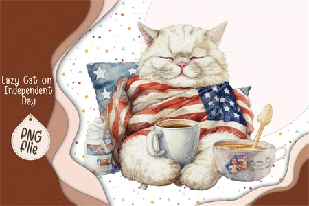 Lazy Cat on 4th of July in watercolor clipart