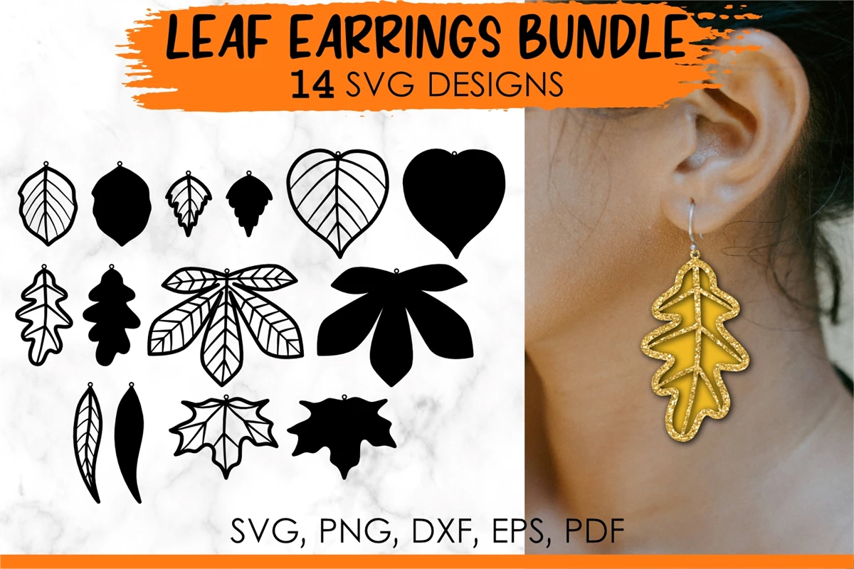 This is digital file with instant download - Leaf Earrings Svg Bundle