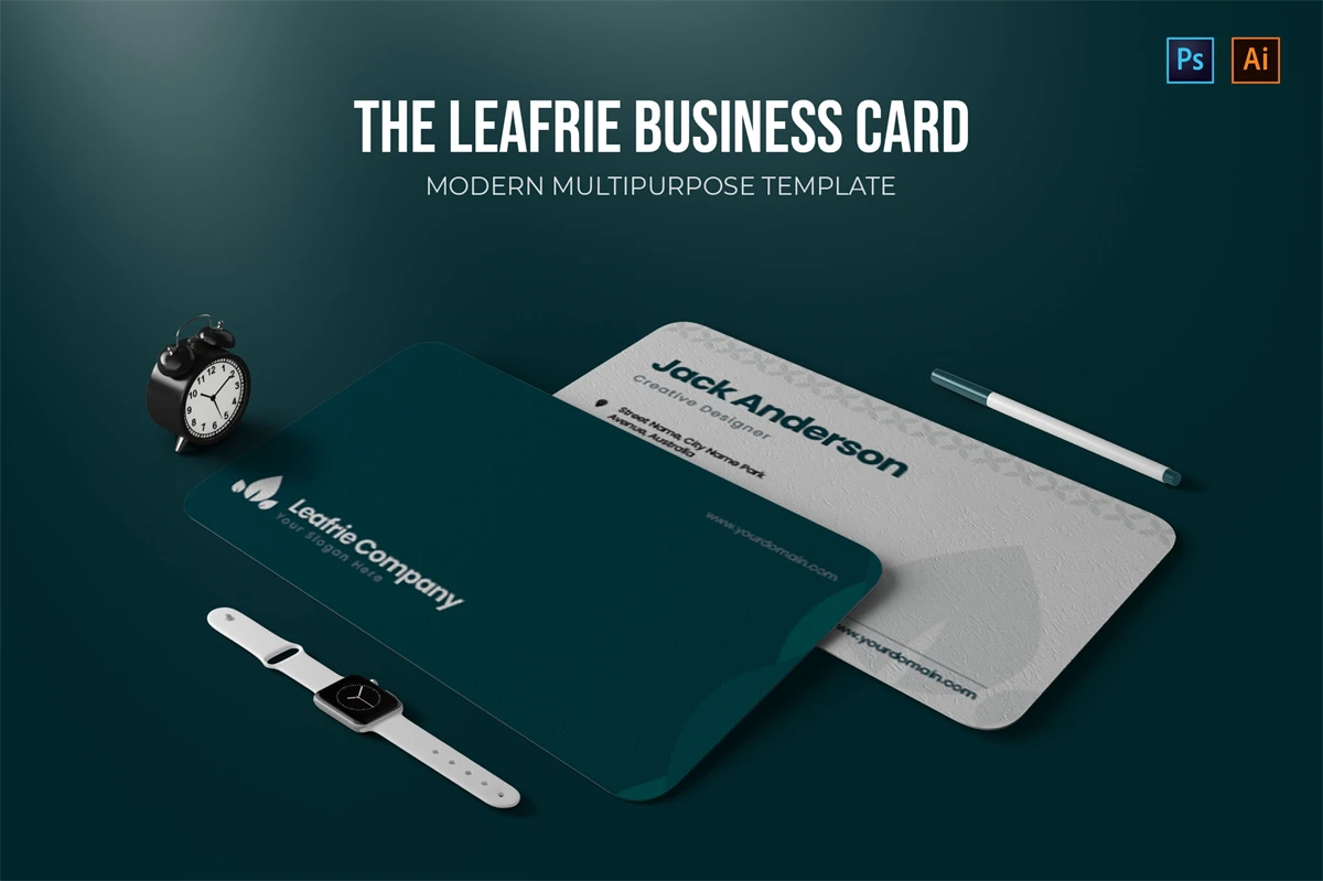 This Leafrie Company - Business Card make your business cards look professional. You can use this business card for, identity, company business cards, Corporate Business, Creative, Blogs, Photographers, Artists, Designers, etc.
