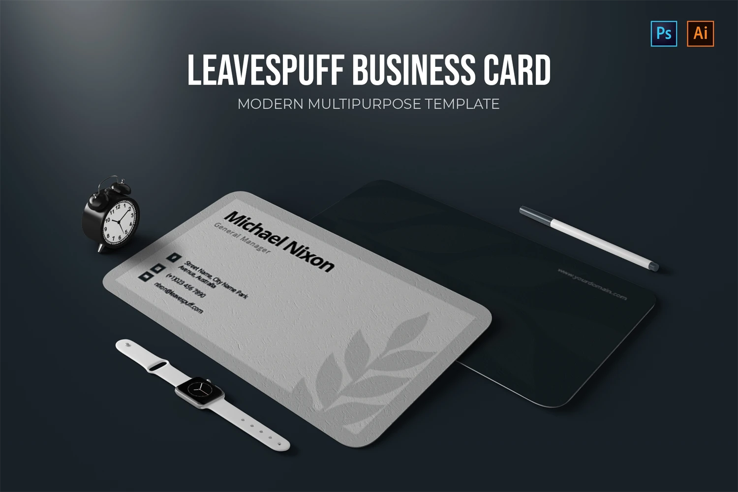 This Leavespuff - Business Card make your business cards look professional. You can use this business card for, identity, company business cards, Corporate Business, Creative, Blogs, Photographers, Artists, Designers, etc.