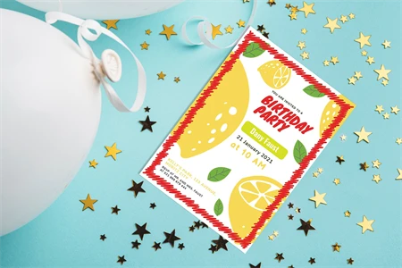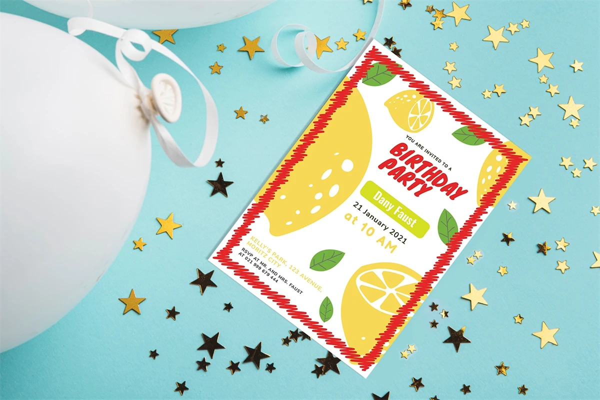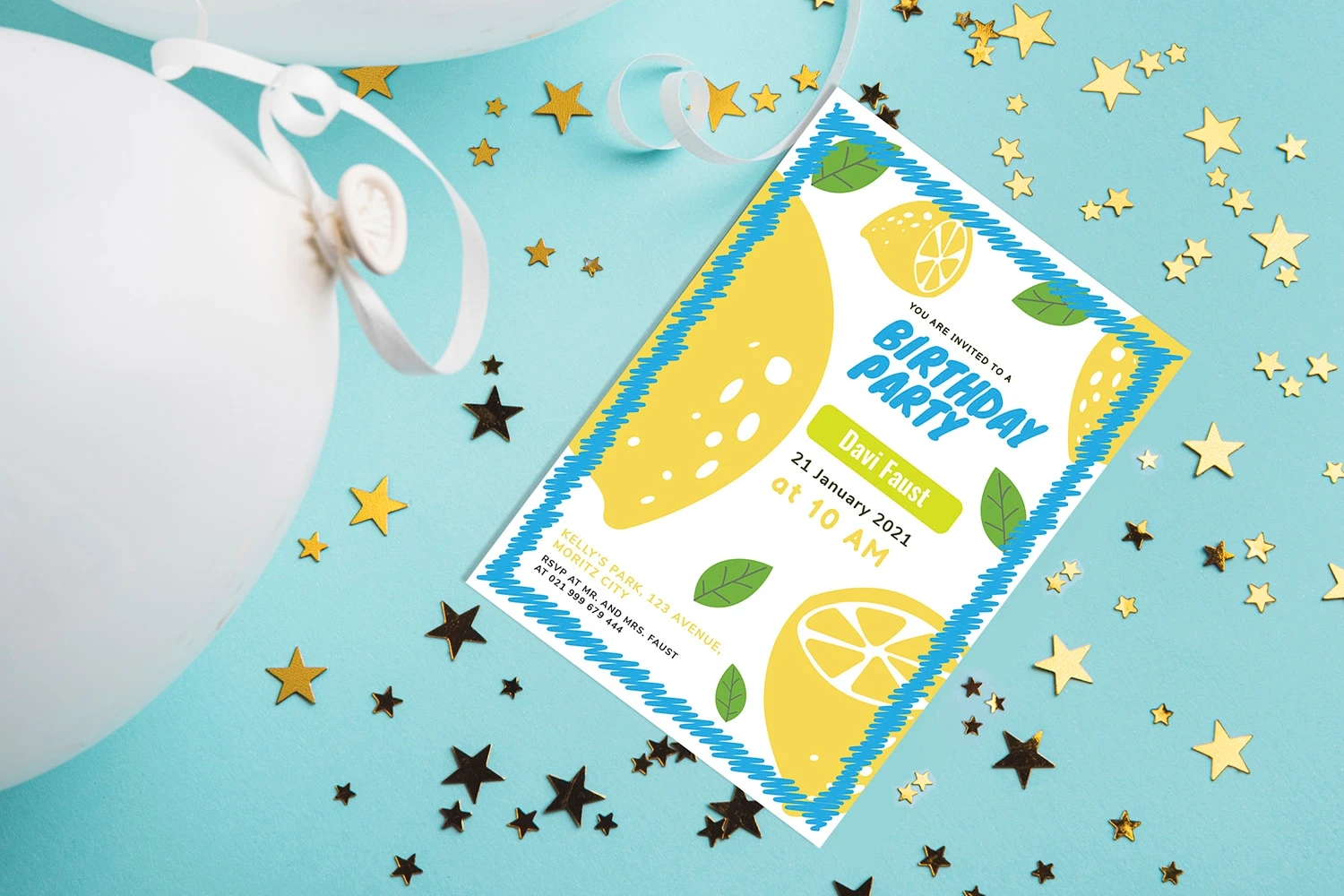 Lemon - Birthday Kids Invitation, is an invitation card leaflet, poster design, etc. Simple and very elegant You can easily edit & adjust each design because each layer such as text, images and shapes are well organized and highlighted.