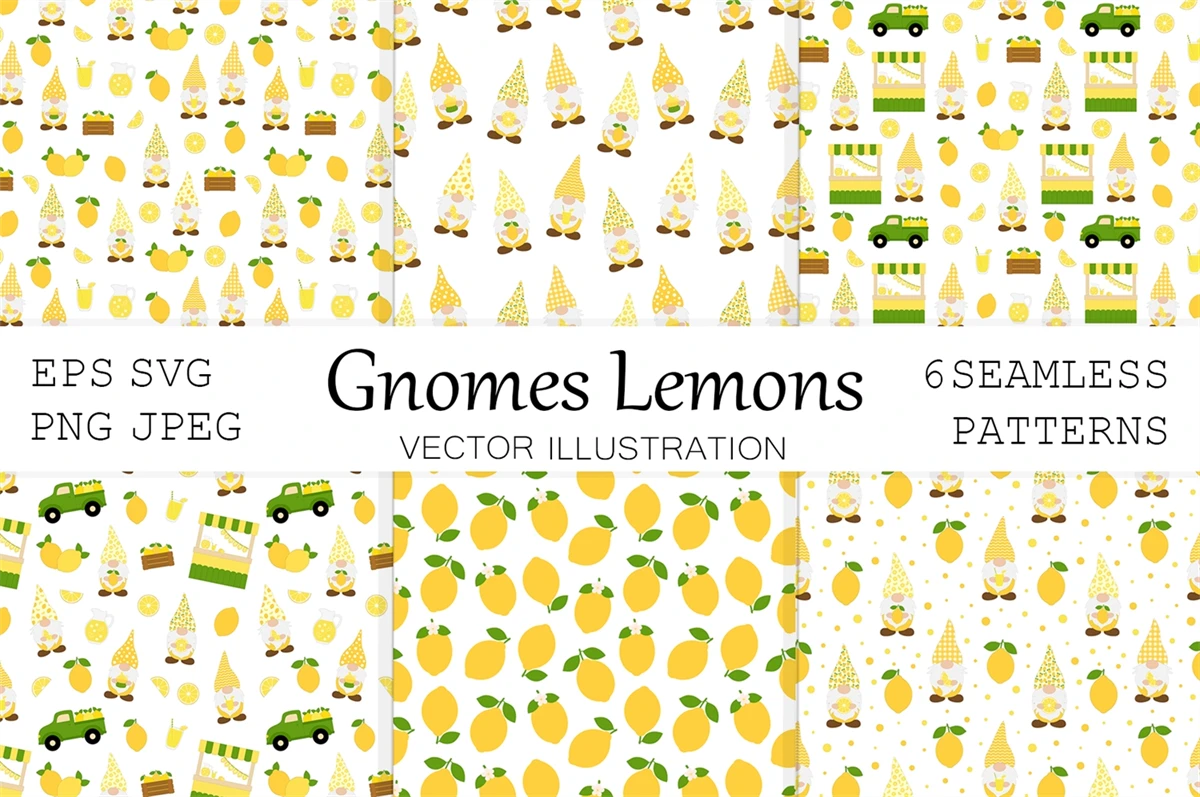 Lemon Gnomes pattern. Lemon Gnomes SVG. Gnomes background
