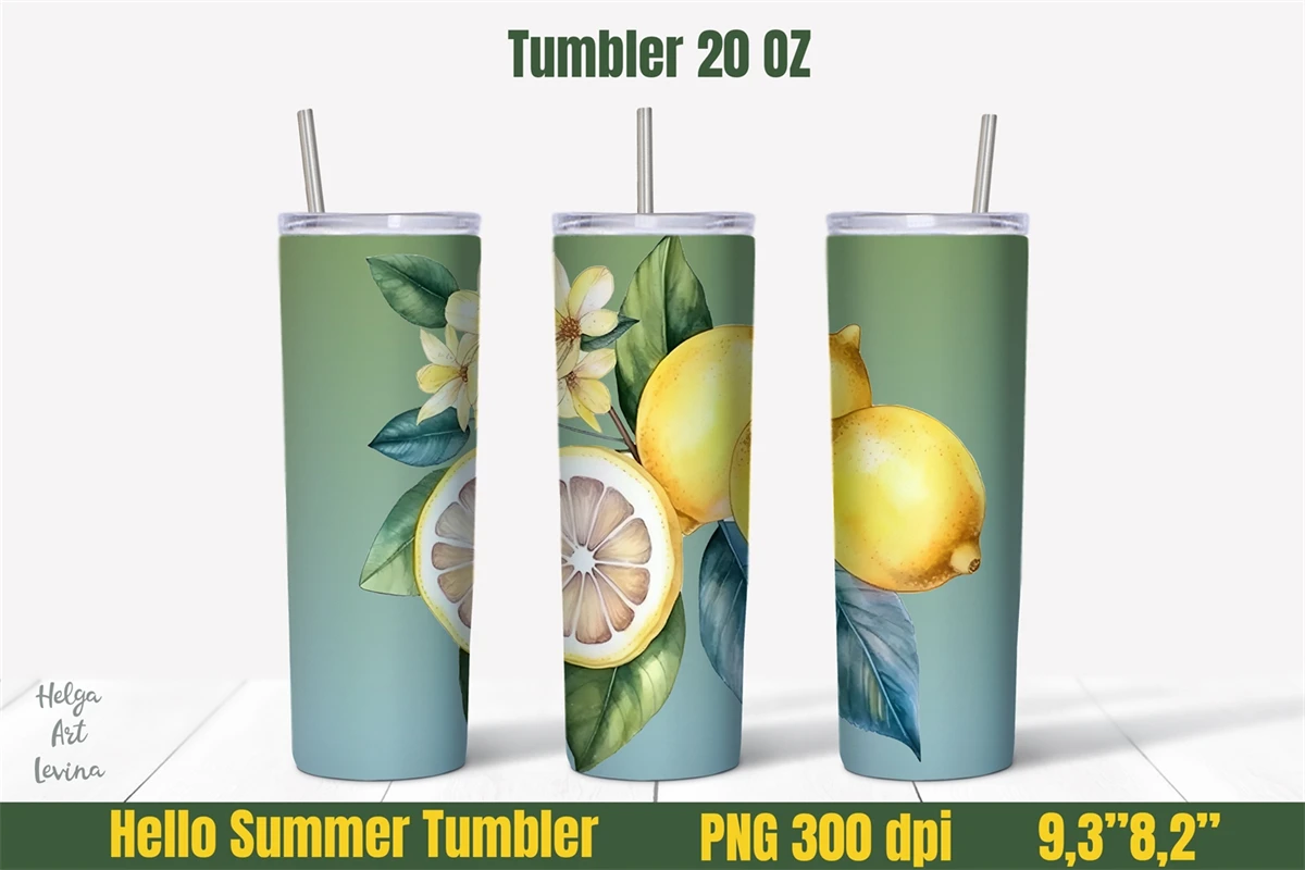 Lemons 20 oz skinny Tumbler Sublimation. Tumbler wrap design