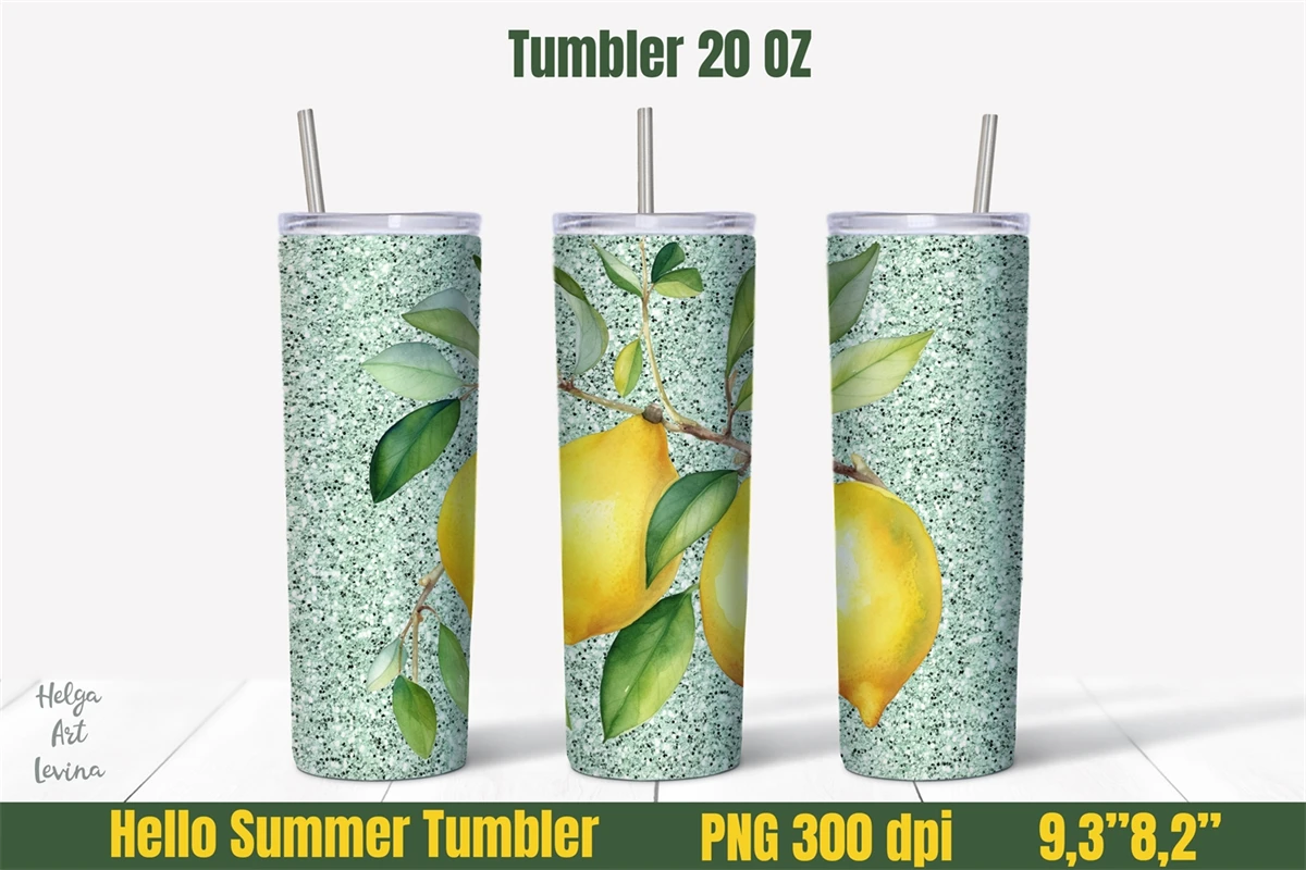 Lemons 20 oz skinny Tumbler Sublimation. Tumbler wrap design