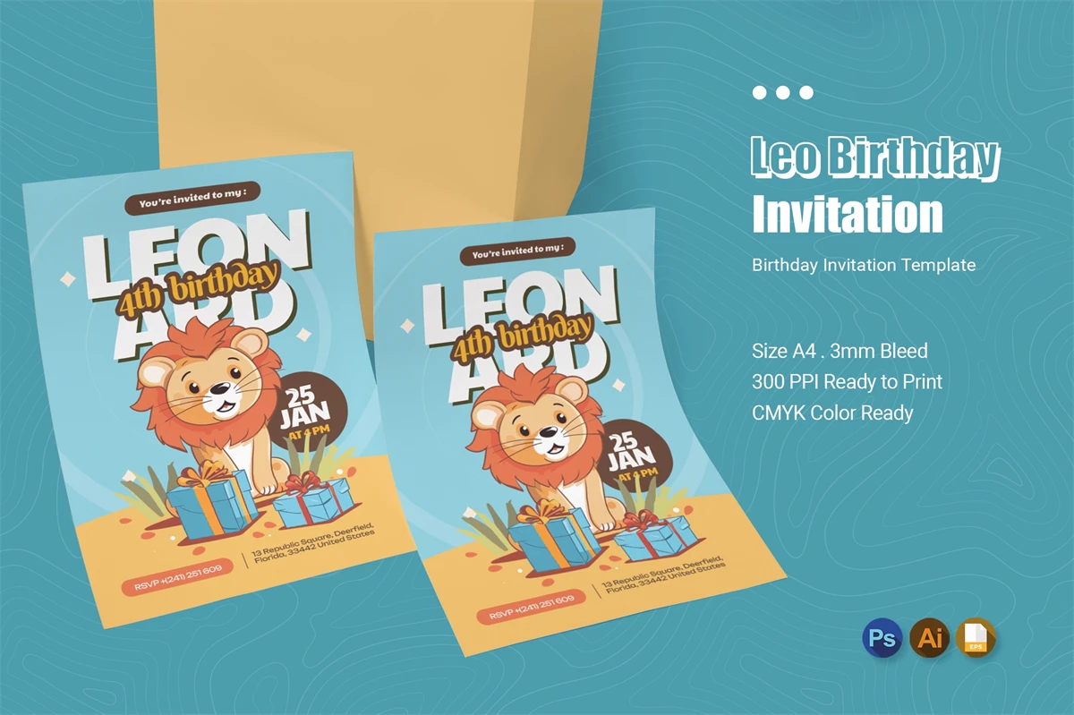 Of course you want to invite friends to your birthday party with the best invitations! Impress the invited guests with your style of invitation, by using this invitation card template. You can easily edit & customize each of the designs because every component is well organized and editable.