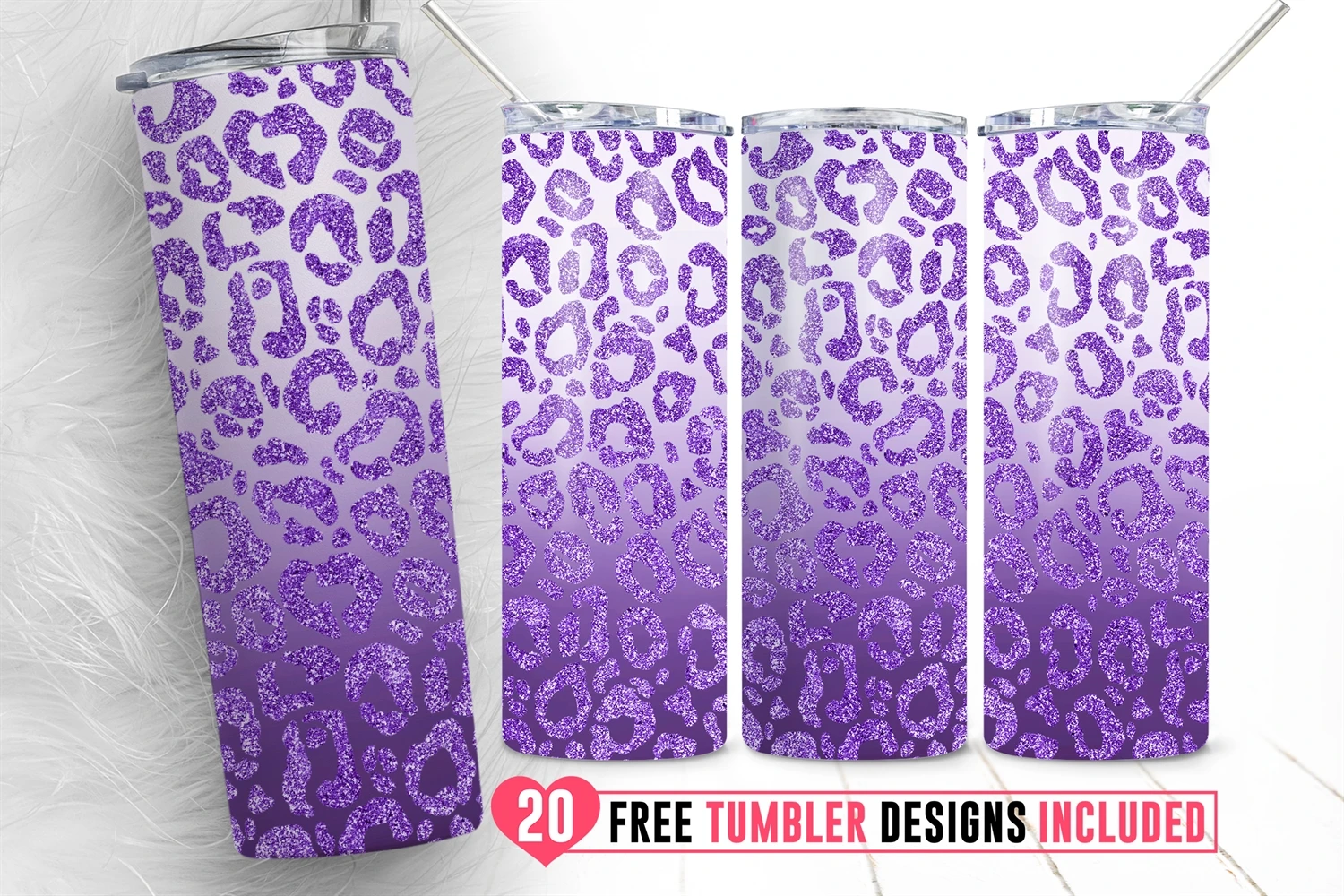 Leopard Glitter Ombre Skinny Tumbler Animal Pattern Cheetah