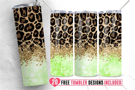 Leopard Glitter Ombre Skinny Tumbler Animal Pattern Cheetah