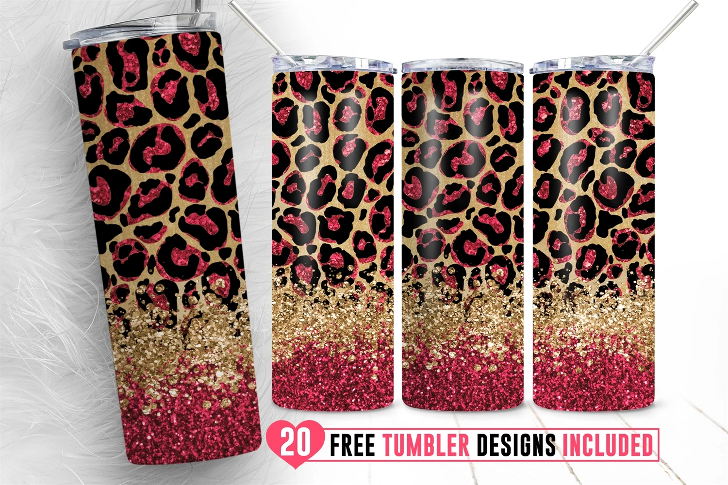 Leopard Glitter Skinny Tumbler Sublimation Animal Pattern