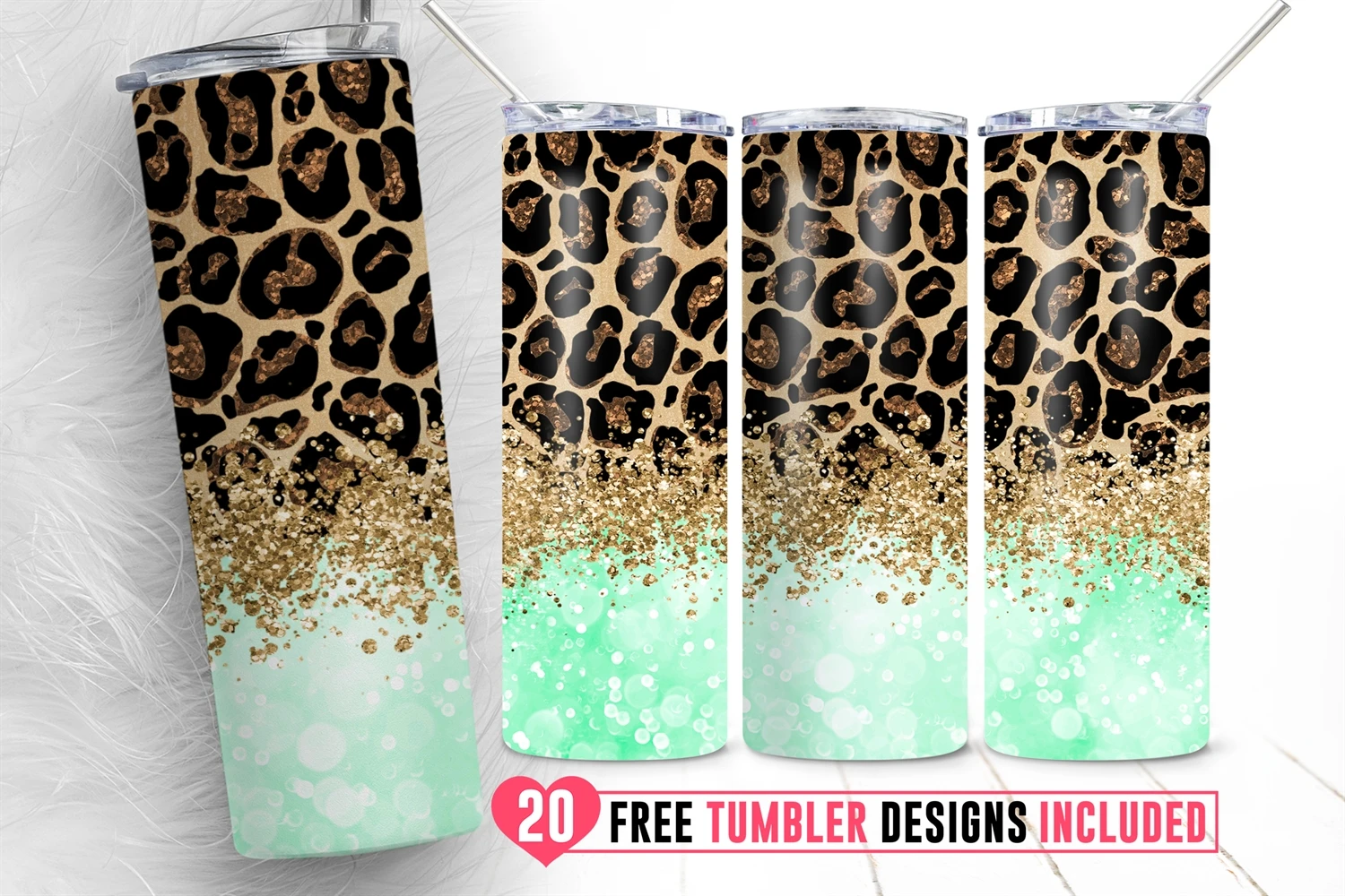 Leopard Glitter Skinny Tumbler Sublimation Animal Pattern
